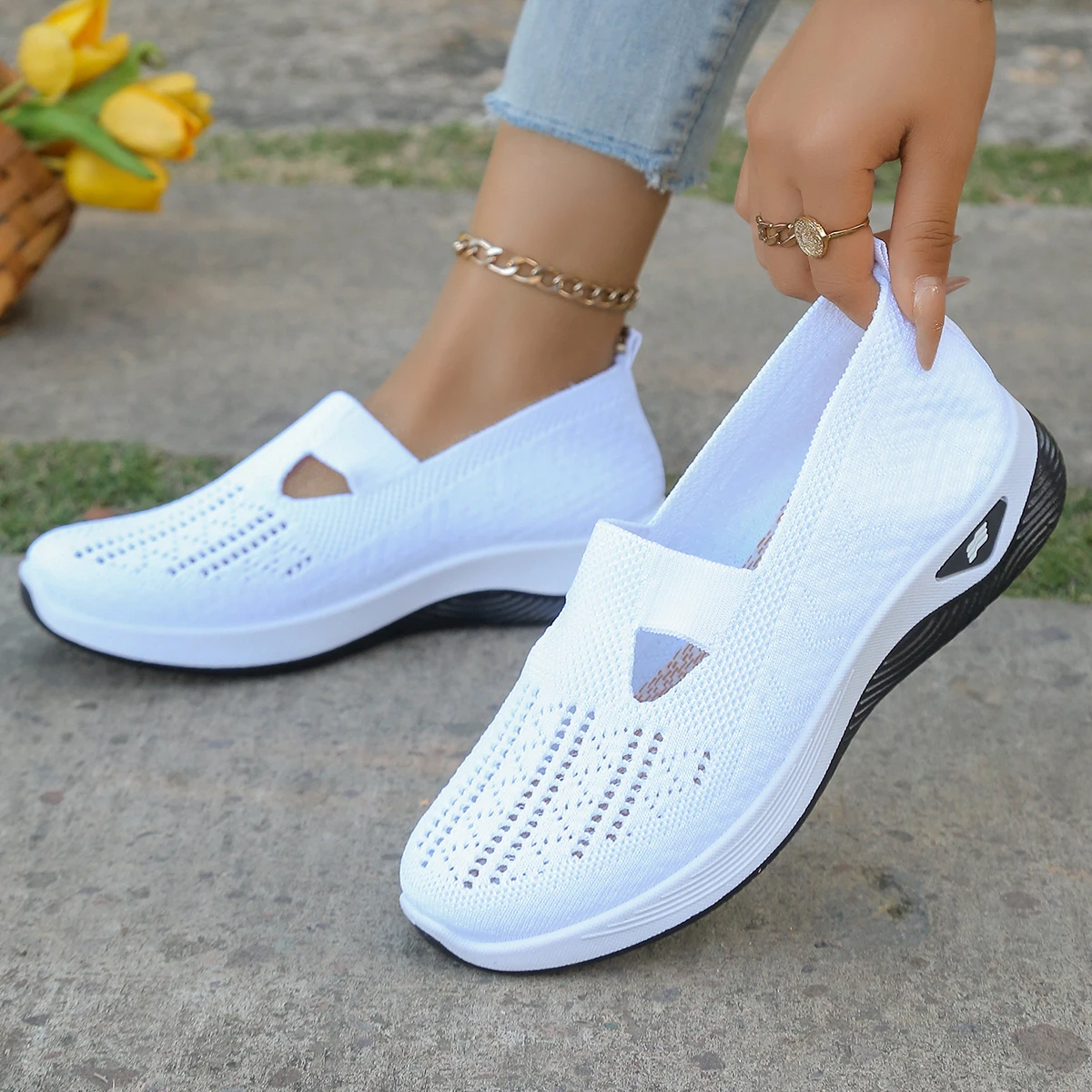 Women's shoes, women's casual shoes, solid color breathable sports shoes, soft-soled lightweight walking shoes, low-top knitted