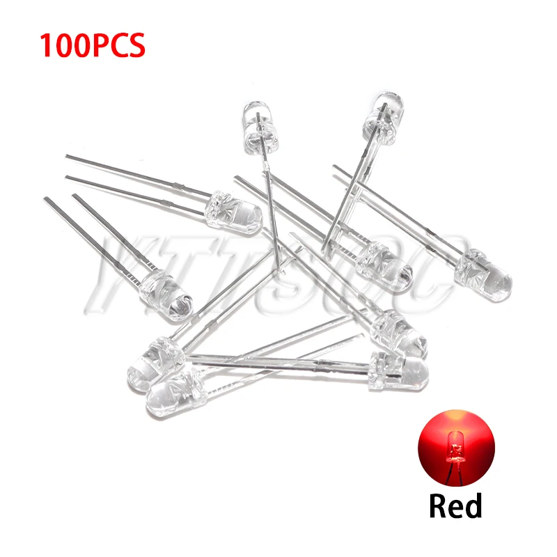 100pcs 3mm LED Diode Ultra Bright Warm White Red Green Blue Purple Yellow Orange Pink 2V 3V Multicolor Emitting Assortment
