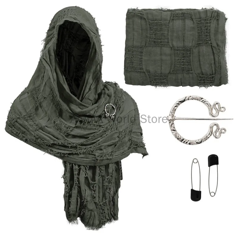 Medieval Halloween Cloak Renaissance Costume Cape Wrap Dune Wasteland Hooded Shawl With Brooch Cowl Scarf Rogue Cosplay Costume