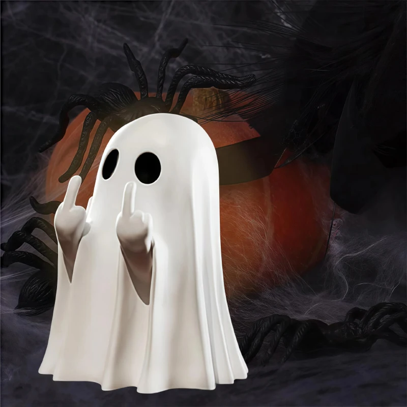 Cute Middle Finger Ghost Statue, Small Halloween Decor for Home, Centerpiece for Coffee Table, Adorable Horror Figure