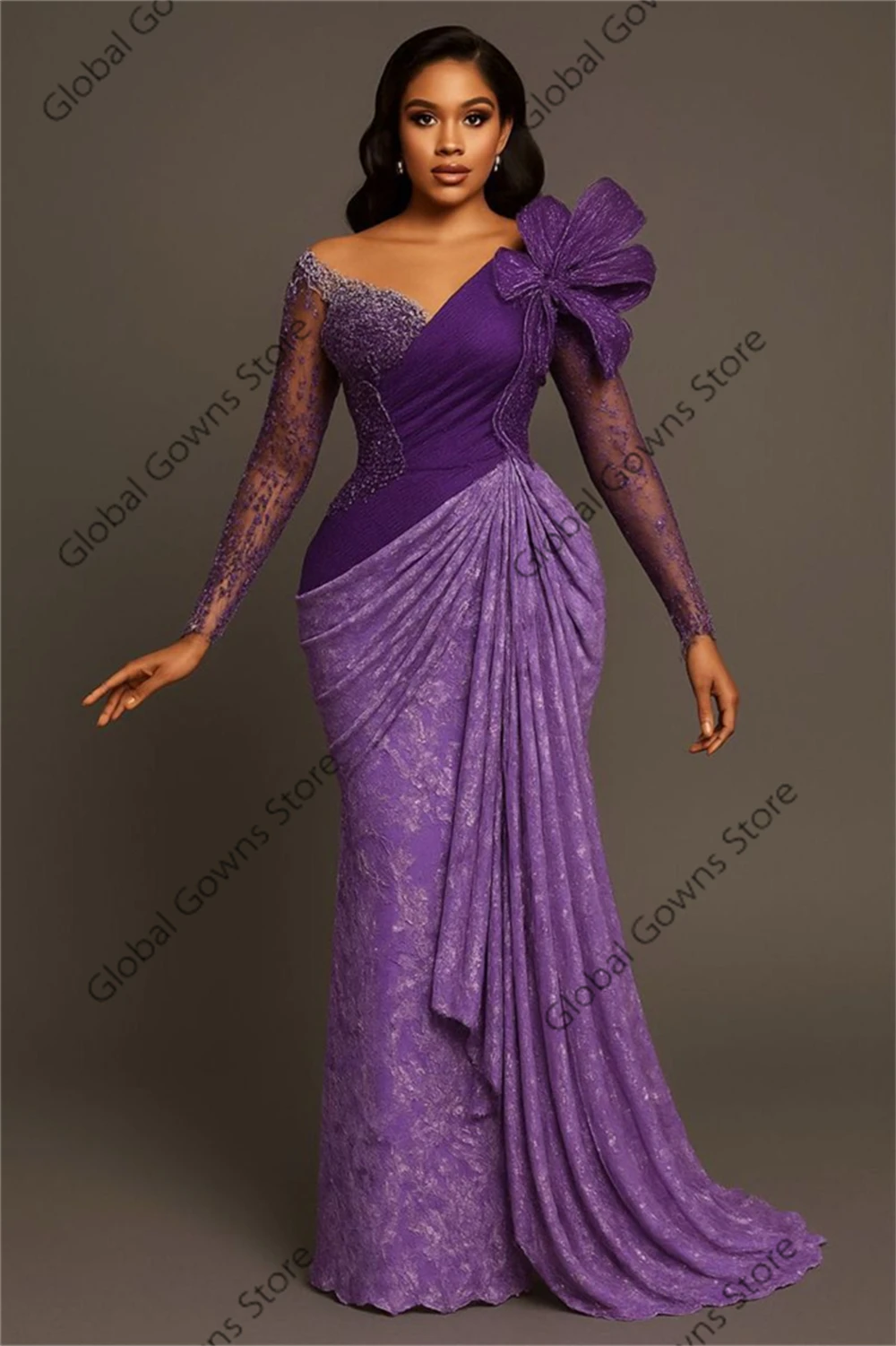 Lilac Off The Shoulder Lace Applique Mermaid Evening Dresses For African Girls Luxurious Prom Dress Bridesmaid Gowns Customized