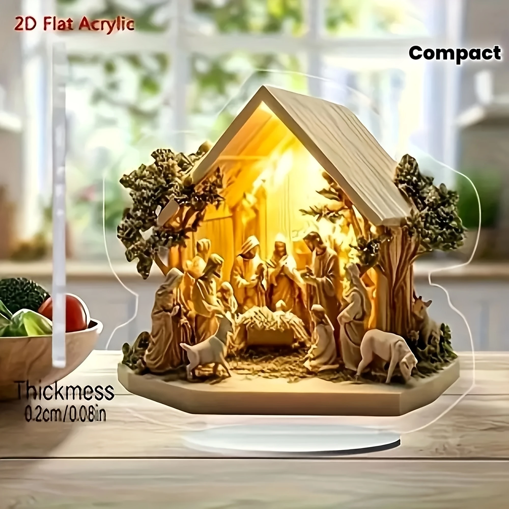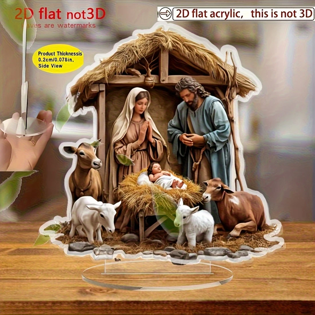 2D Acrylic Desktop Christmas Decor - Jesus' Birth Virgin Mary Angel Cartoon Print Christian Home Christmas 2026 New Year Gift