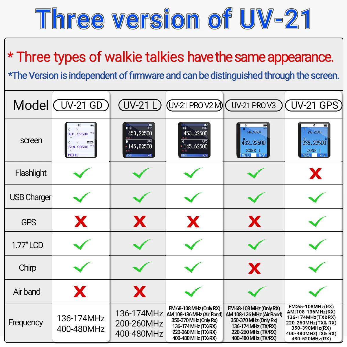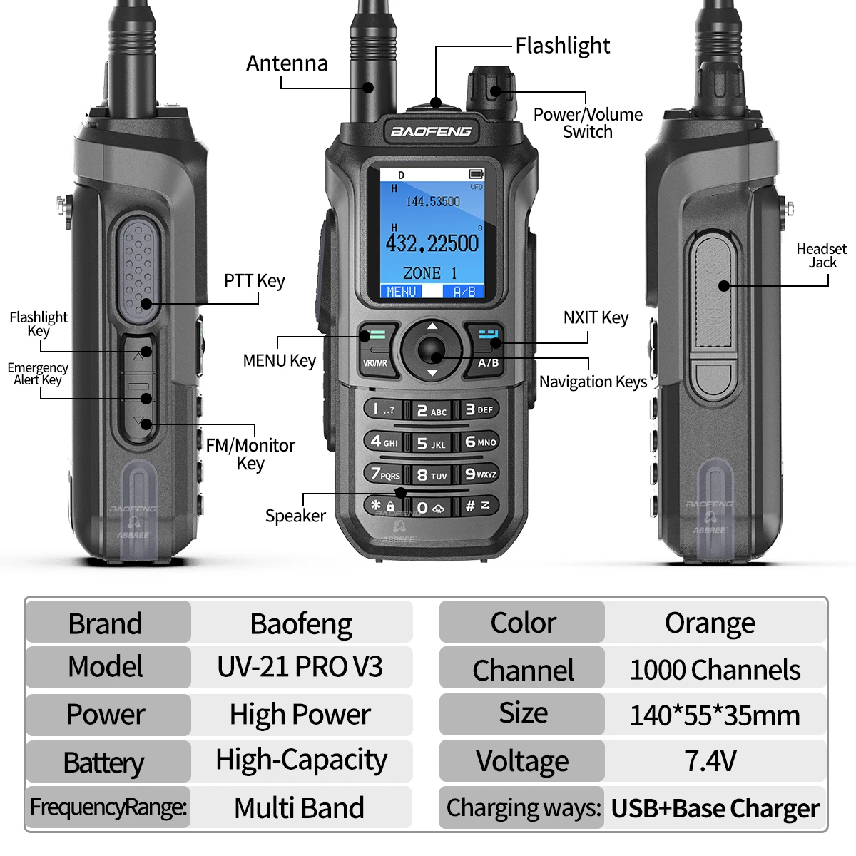 Baofeng UV-21 Pro Walkie Talkie Multi-Band Bluetooth Programming V3 Long Range Wireless Copy Frequency Type-c charge Ham Radio