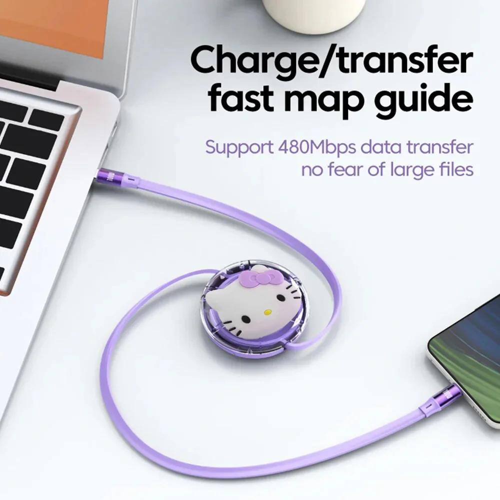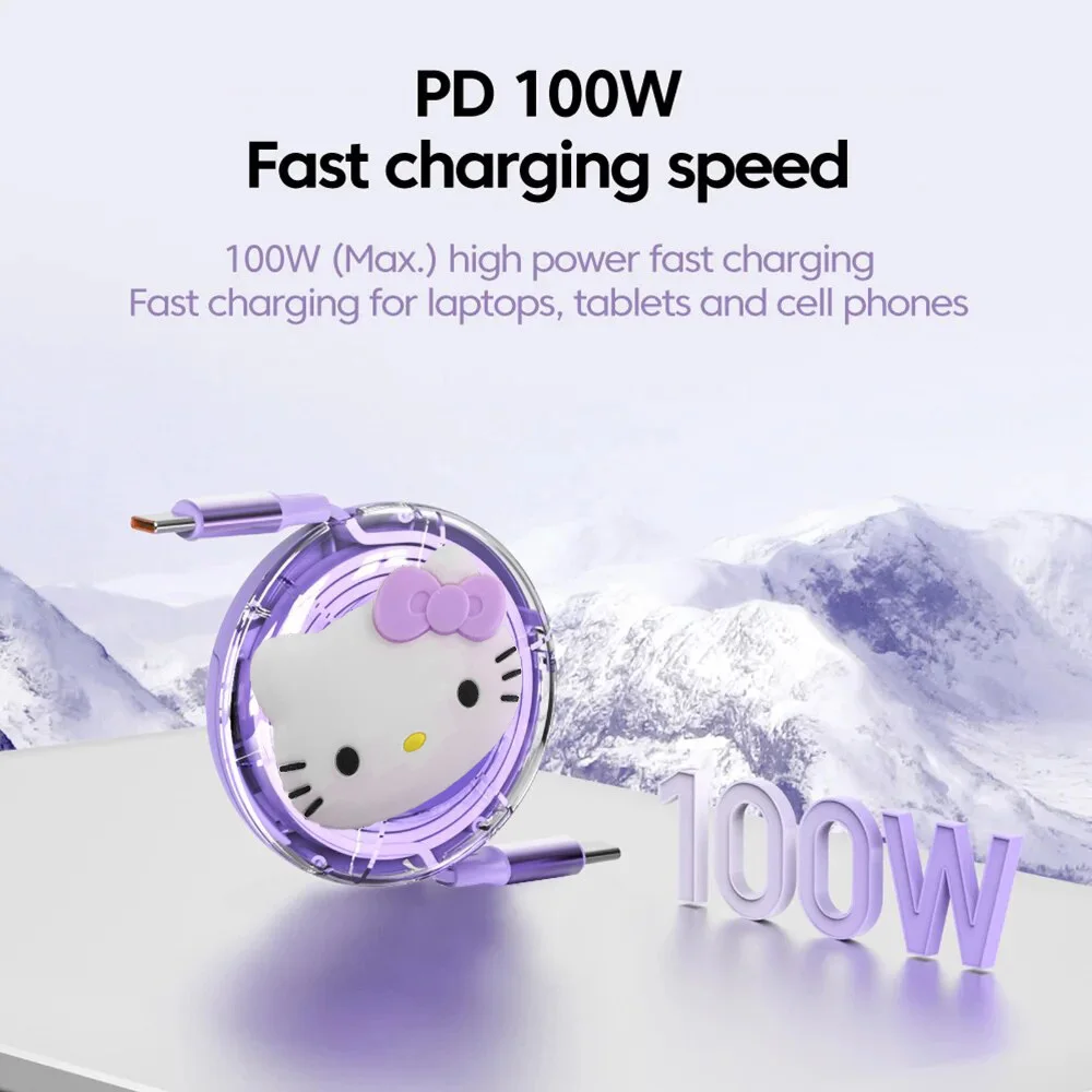 Sanrio Hello Kitty Cartoon Retractable PD 100W Cable USB Type C to Type C Fast Charging USB C to USB C Cable for iphone 15 Huawe