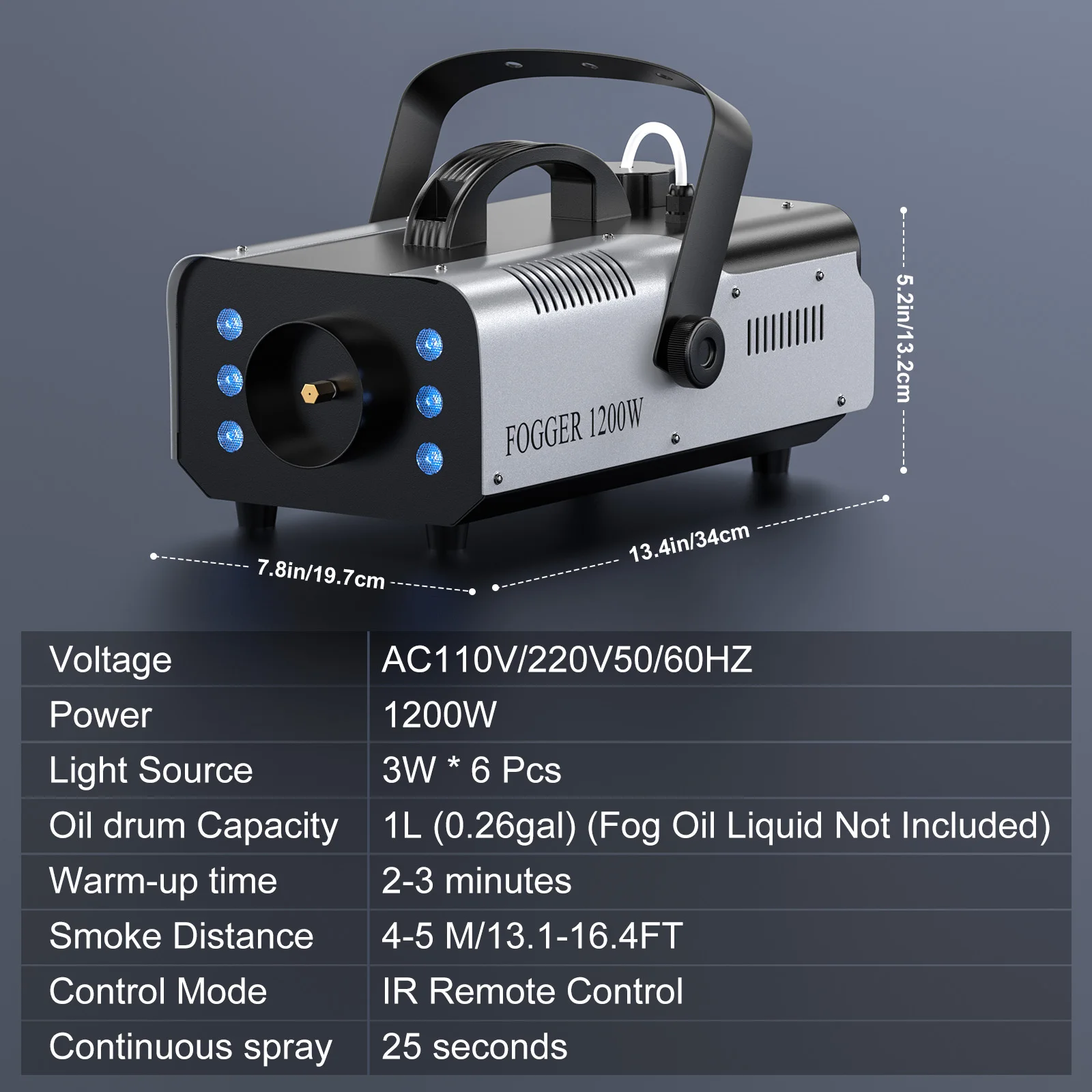 U'King 1200W Fog Machine 6LEDs Remote Fogger Ejector Disco Colorful Smoke Machine DJ Christmas Party Effects Stage Light