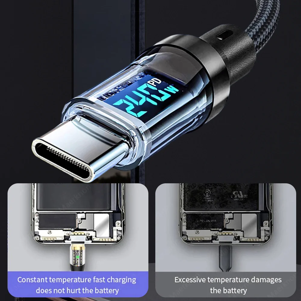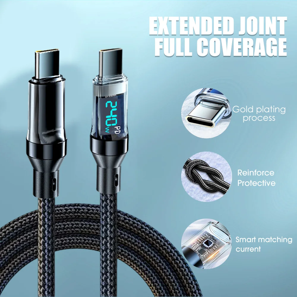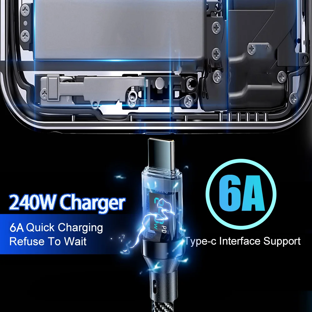 240W Type C Fast Charging Cable For iPhone 16 USB C Mobile Phone LED Display Cables For Samsung Data Cord For Huawei Oppo Vivo