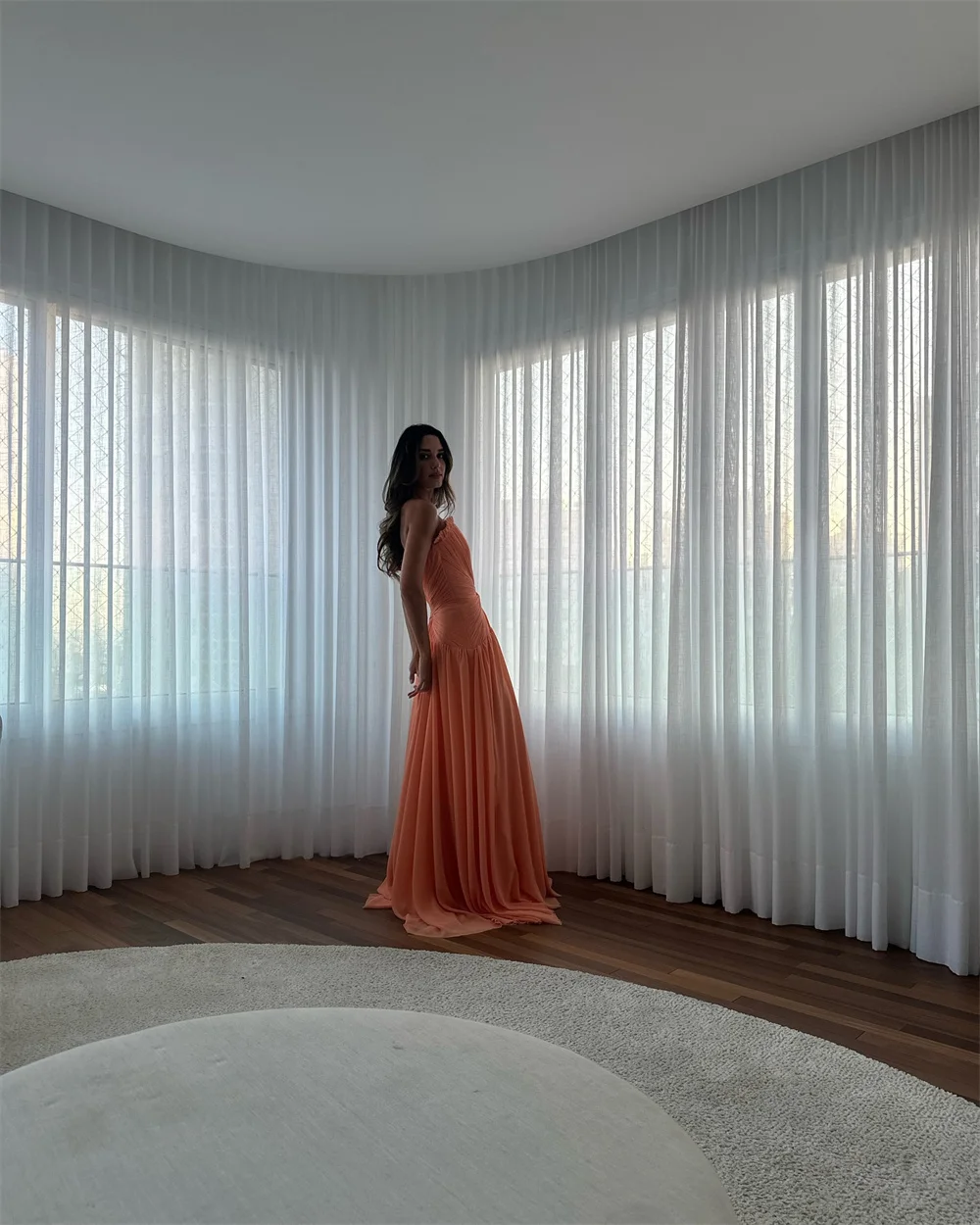Bella Customized Orange A-Line Strapless robes de soirée Sleeveless Chiffon Chic Party Dresses Floor-Length Zip Prom Dress 2025