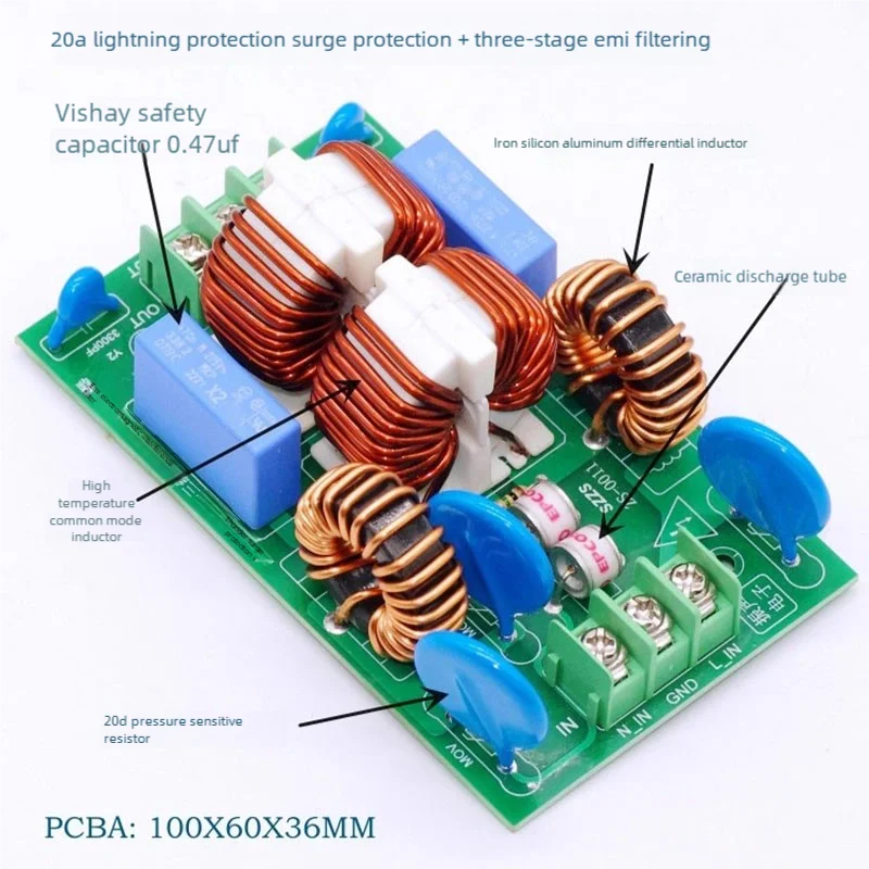 External lightning surge protection 110/220V AC EMI filter 15/20A anti-interference power Filtering Board Purifier noise