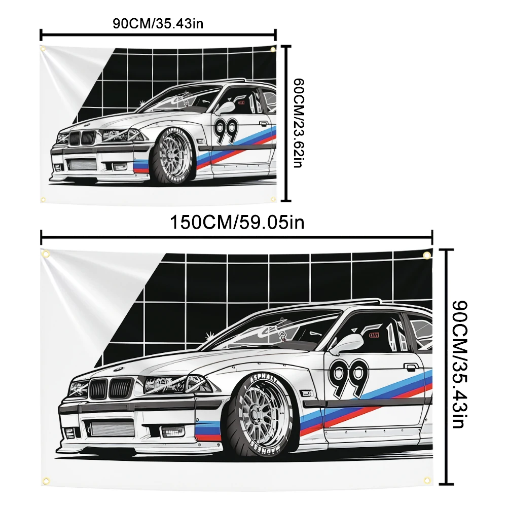 90x150cm Cool Car Racing Flag Funny Meme Banner Abstract Cartoon Art Design Tapestry Color Wall Hanging Flag For Bedroom