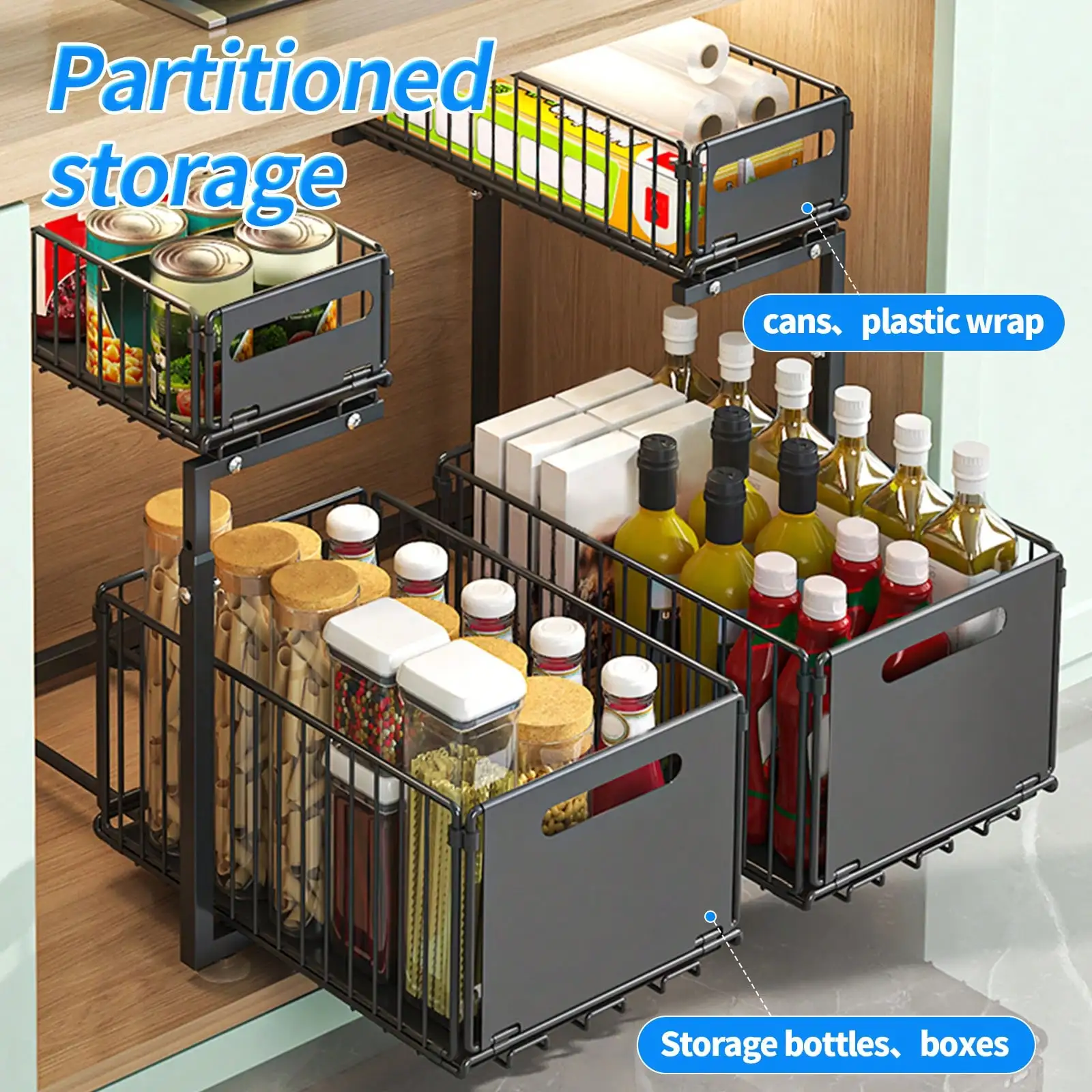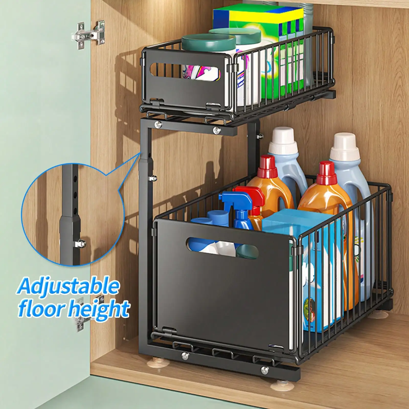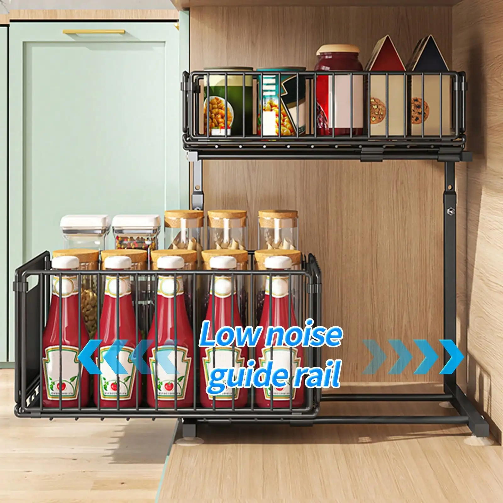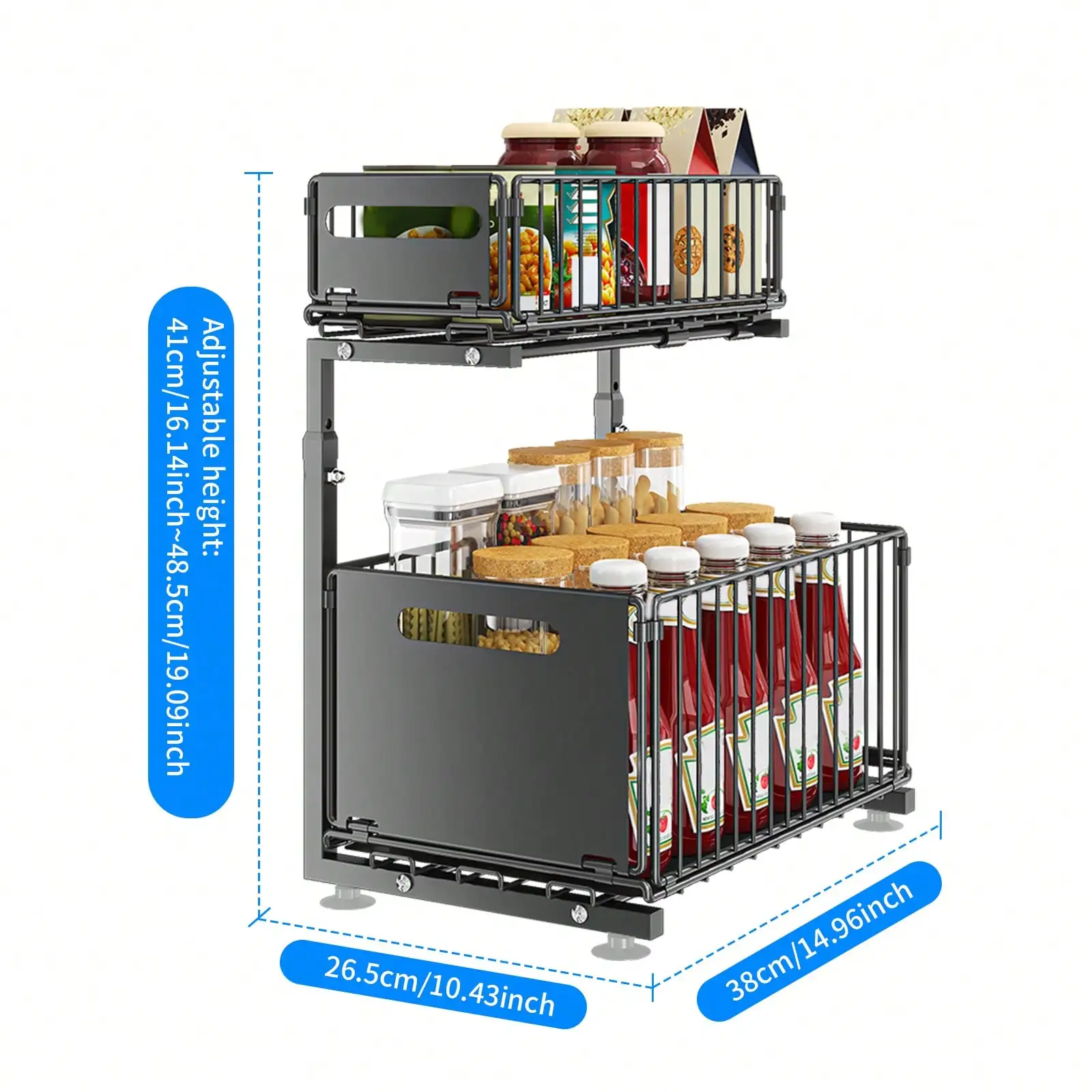 2 Tier Pull Out Cabinet Organizer Adjustable Kitchen Storage Rack Under Sink Organizer Spice Jar Storage Rack Slide Out Drawer