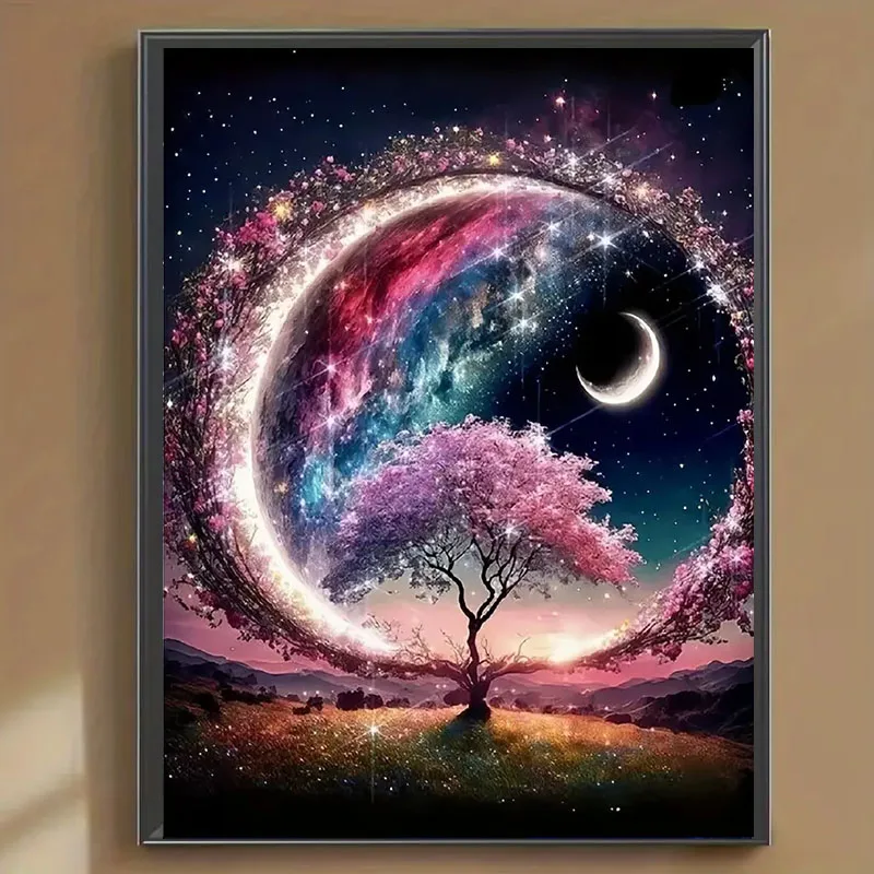 1 set of Flower, Moon, Round Diamond Painting Set, DIY Full Diamond Home Decoration, , Frameless Art Crafts