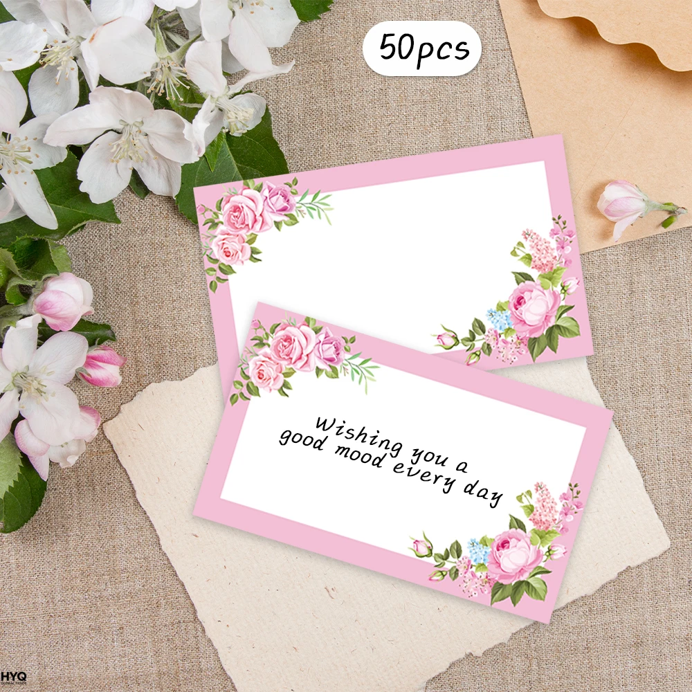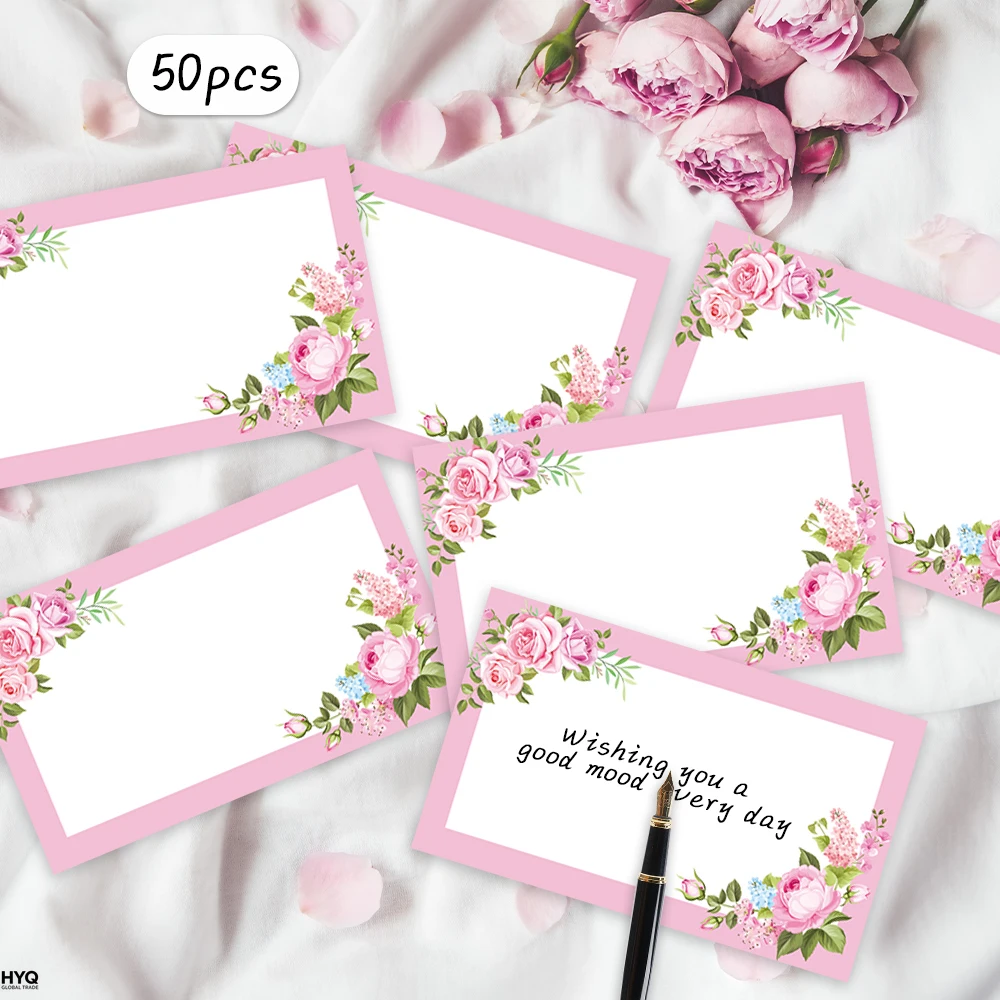 50pcs, Pink Floral Blank Message Cards, Pocket Cards, Business Cards, Blank Greeting Cards, Small Business Supplies, Gift Tags