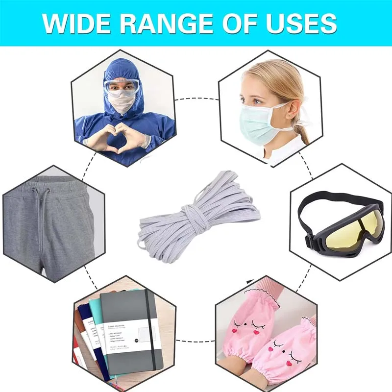 10M 3mm Flat Elastic Band Sewing Stretch Rope Flat Elastic Band High Elastic for DIY Ties Trim MaskUnderware Pajamas