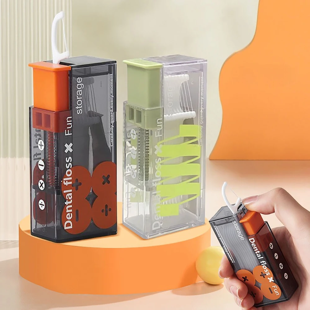 Portable Floss Dispenser Automatic Ejectable Floss Organiser Oral Care Press-on Carry-on Disposable Flossing Sticks Storage Box