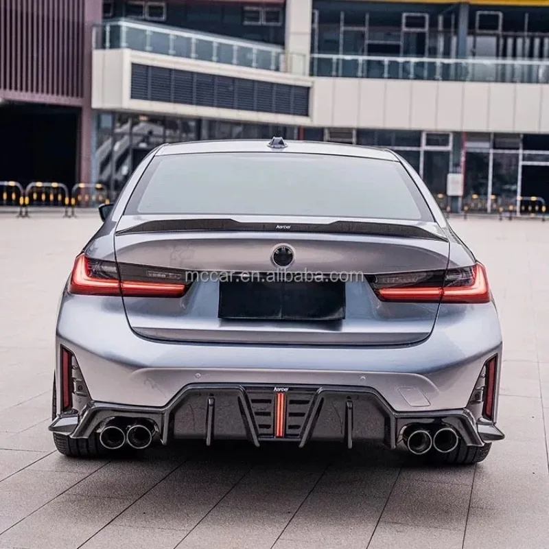 Perfect Fitment Dry Carbon Fiber Rear Lips For BMW 3 Series G20 G28 LCI Car Bumpers Rear Diffuser With Vertical Brake Lights
