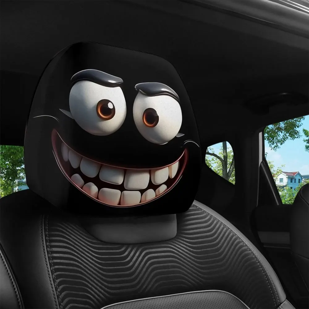 2pcs Smiley Face Printed Car Pillowcase Soft Comfortable Decorative Cushion Cover Auto Seat Headrest Washable Polyester Fabric