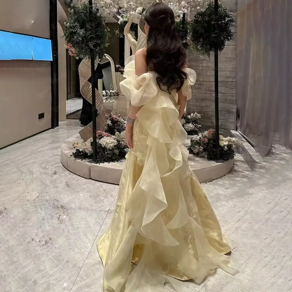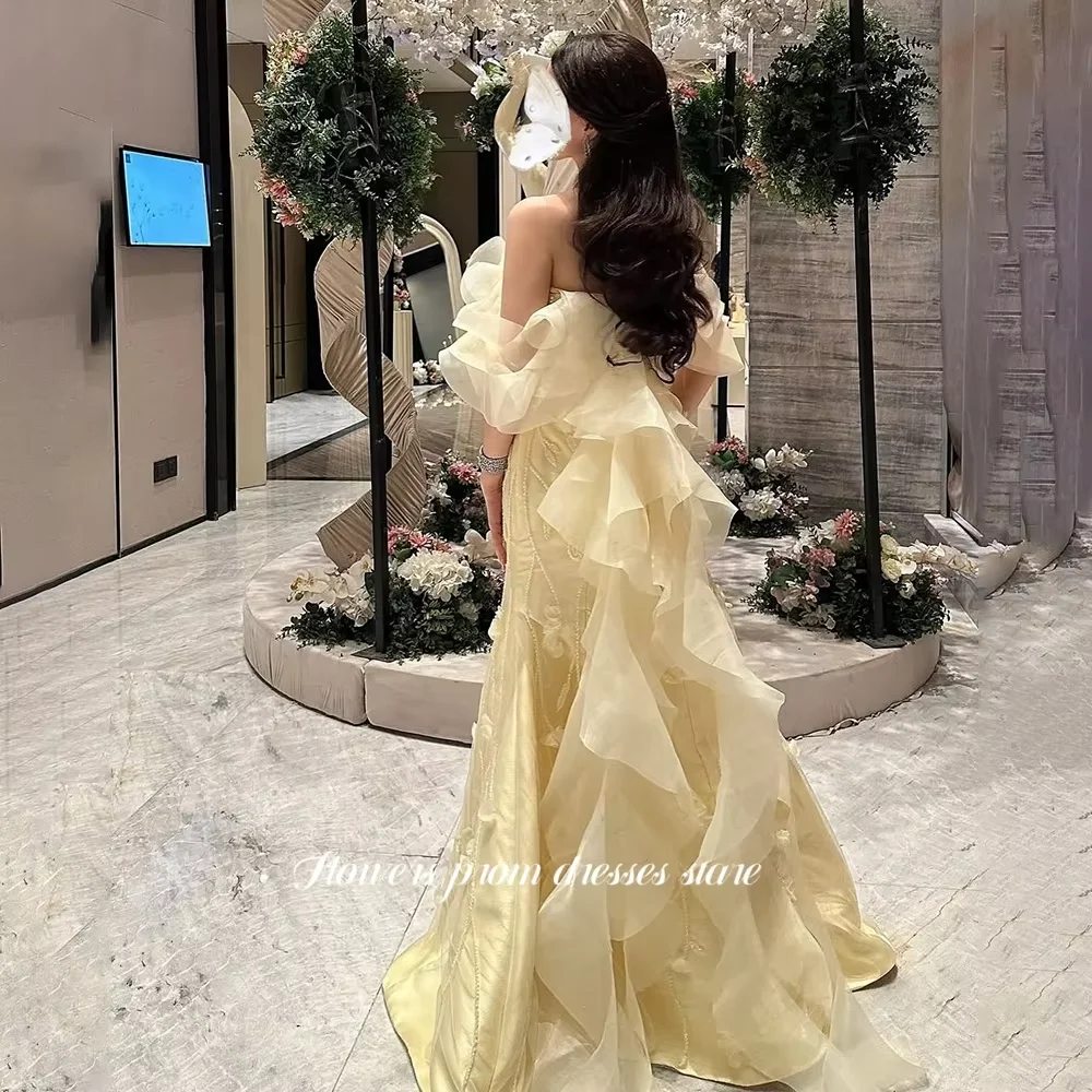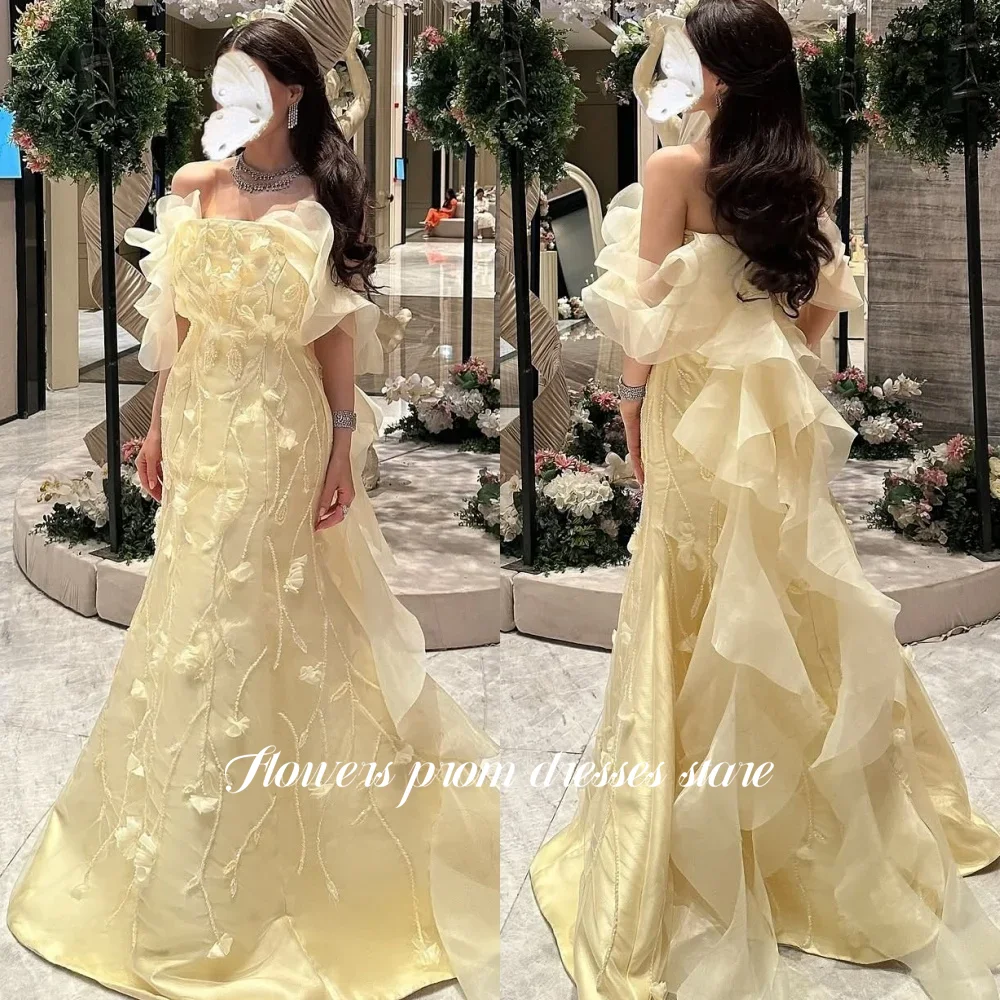 Flowers Off Shoulder Prom Dress Ruffles Party Gowns for Women 3D Flowers Princess Evening Gown vestidos de fiesta Customized
