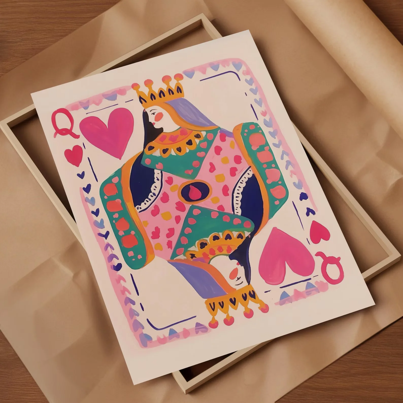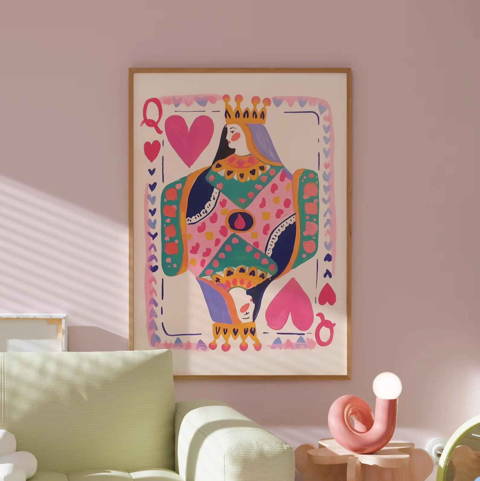 aliexpress , ali , shop , ali shop , online , prodavnica , online shop , online prodavnica , kupujem , prodajem , Queen of Hearts Wall Art Print | Colorful Playing Card Digital Download | Maximalist Card Decor | Dopamine Queen Illustration |