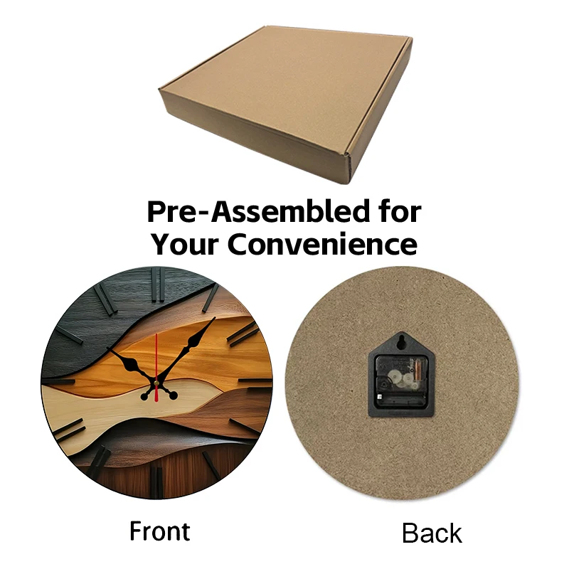 2D-flat Nordic Style Wooden Round Silent Hanging Wall Clock,Suitable For Living Room,Office,Study Room, Bedroom, Home Decoration