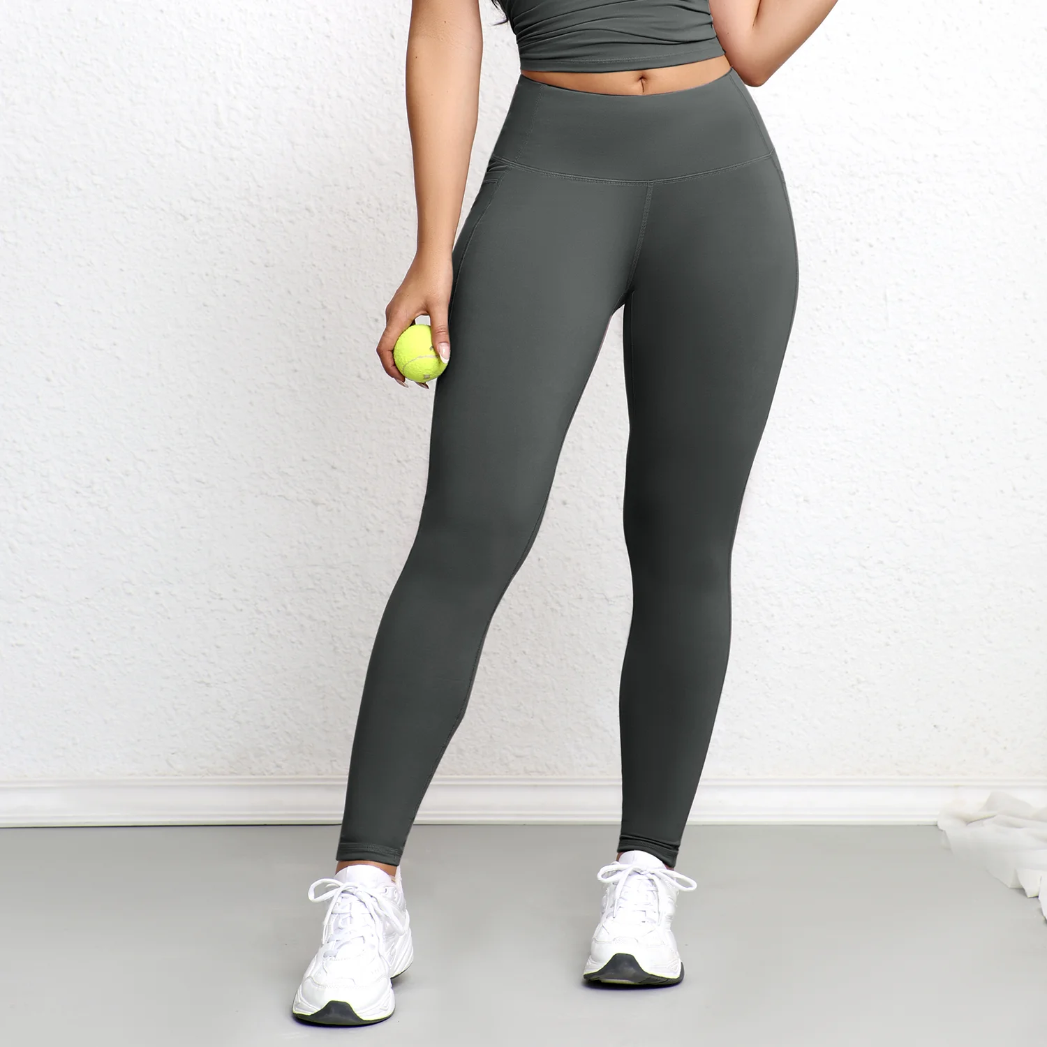 Women Leggings with Pockets Solid Color High Waist Butt Lifting Workout Tights Slim Elastic Pants Casual Wear