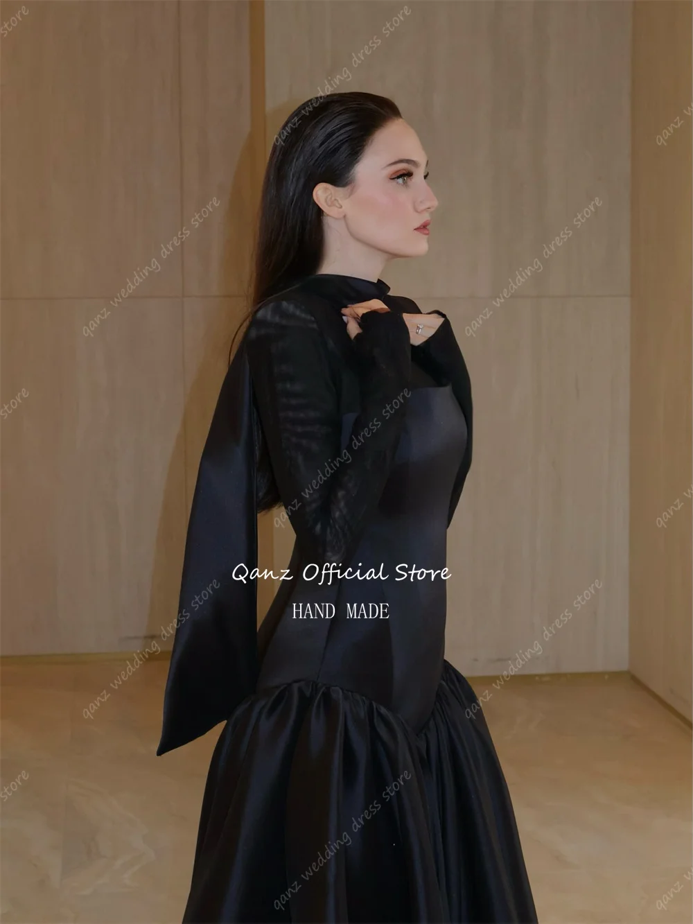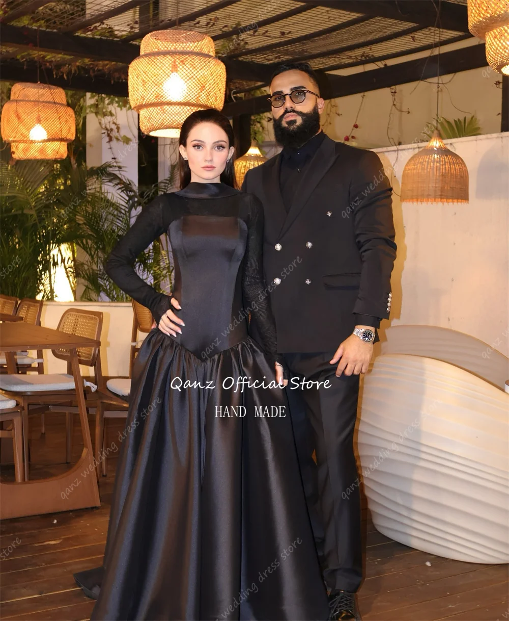 Qanz Vintage Soft Satin Evening Dresses Satrpless Long A Line Formal Dresses Woman Long Sleeves Vestidos De Fiesta Customized