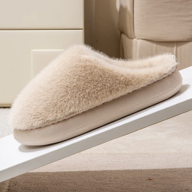 Winter Fluffy Furry House Slippers for Women Solid Color Plush Warm Cotton Shoes Woman Thick Soft Sole Faux Fur Indoor Slippers