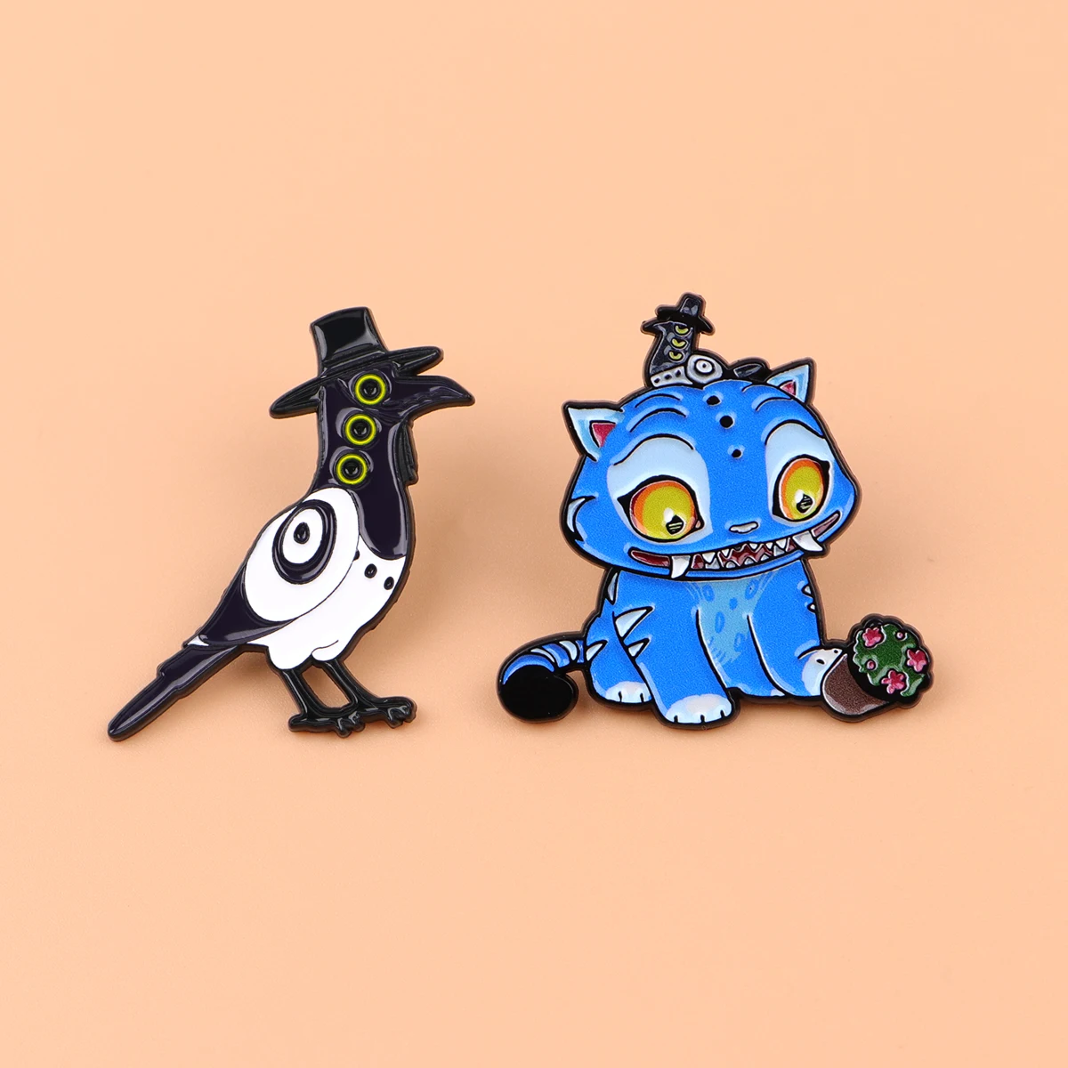 Bird and Monster Enamel Pin Brooches For Women Lapel Pins Badge on Backpack Costume Accessories Fashion Jewelry Gifts for Friend