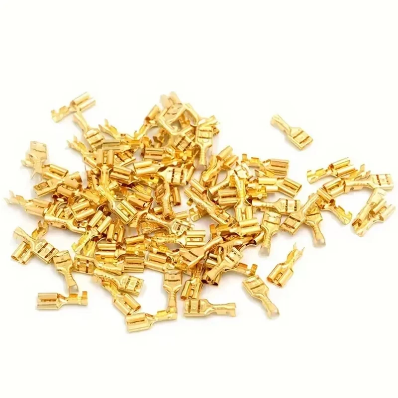 100pcs 6.3mm Golden Brass Car Speaker Female Shovel-shaped Terminal Wire Connector