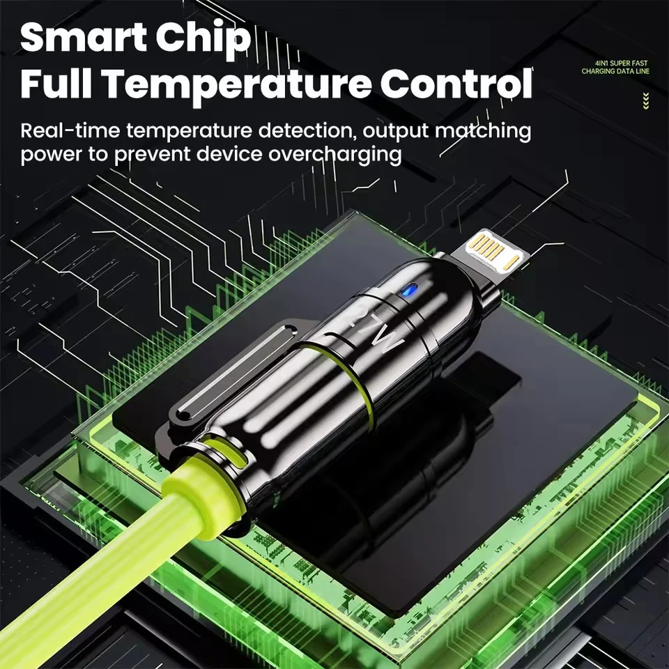 240W Silicone 4-in-1 Fast Charging Cable for IPhone 16 15 14 13 12 11 Pro Max for Samsung S25 S24 S23 for LG for Moto G Oppo