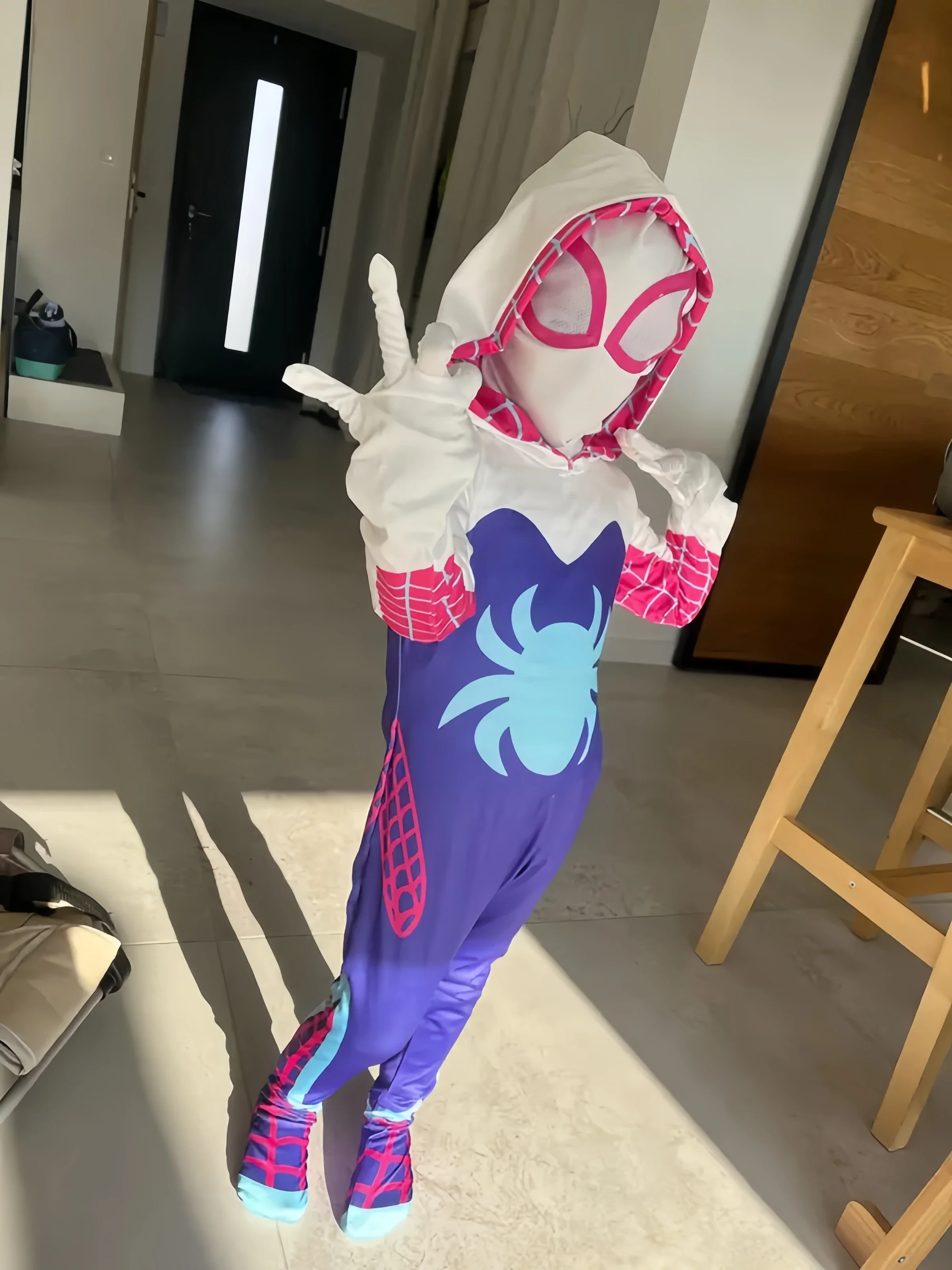 aliexpress , ali , shop , ali shop , online , prodavnica , online shop , online prodavnica , kupujem , prodajem , Girls Gwen Stacy Spider Costume Bodysuit Jumpsuit Adult Kids Halloween Cosplay Party Costume Fantasy Dress Up Mask Hoodies Suit