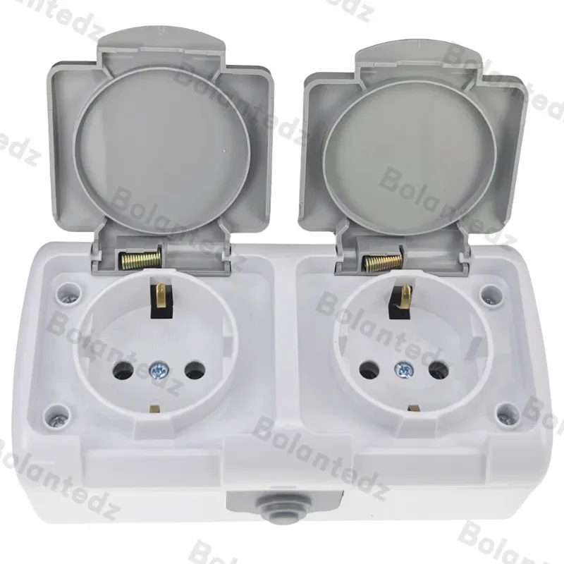 1Pc Surface-Mounted Single-Unit Wall Panel Household 16A European Standard Two-Hole Socket With Cover Waterproof And Splash-Poof