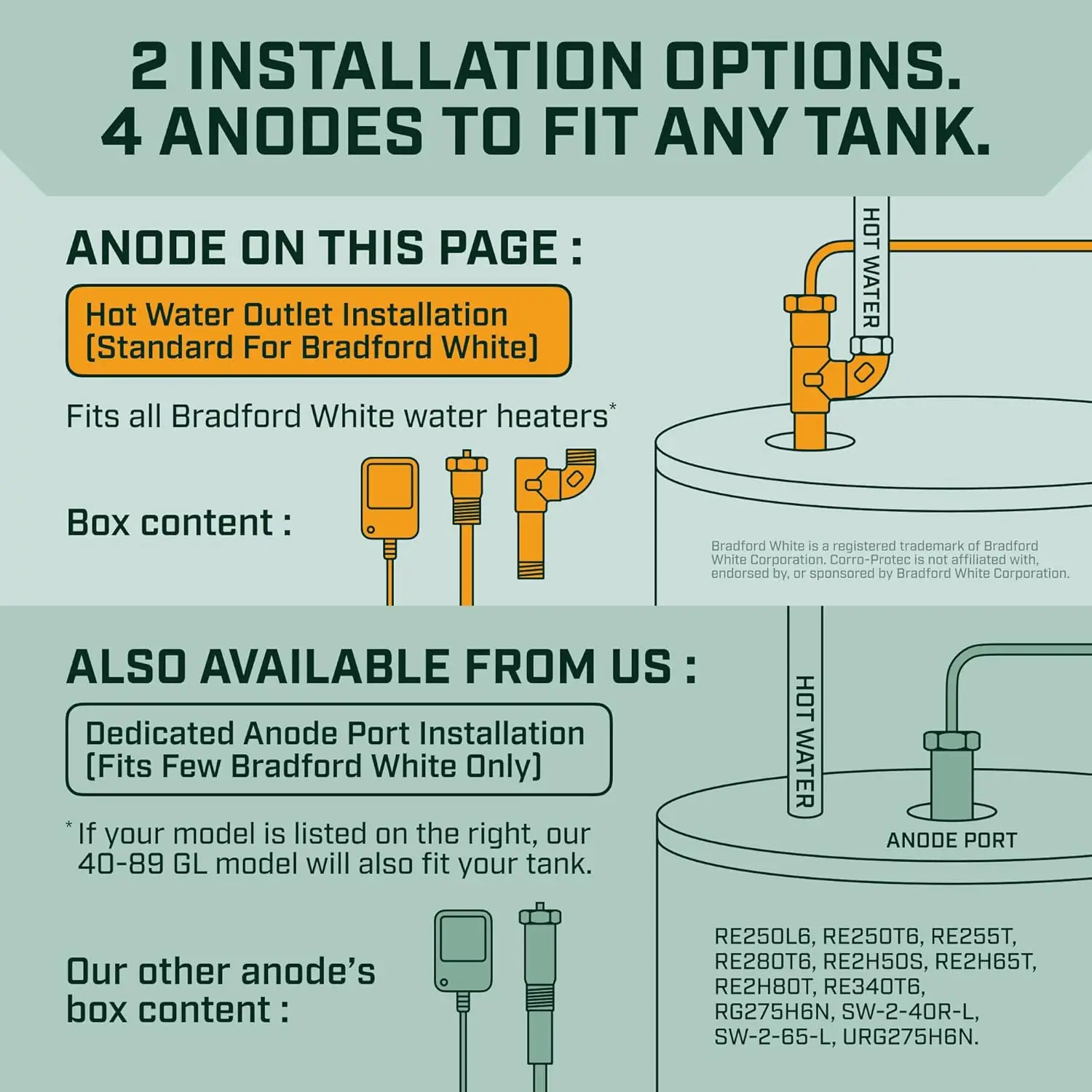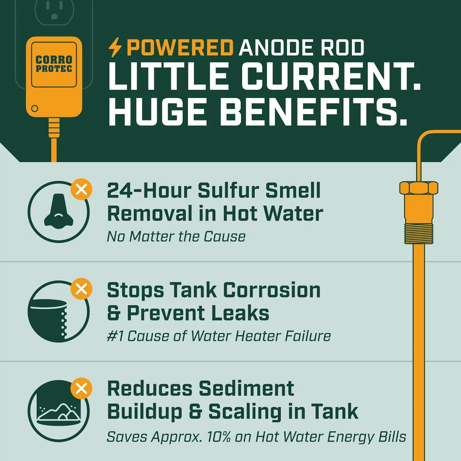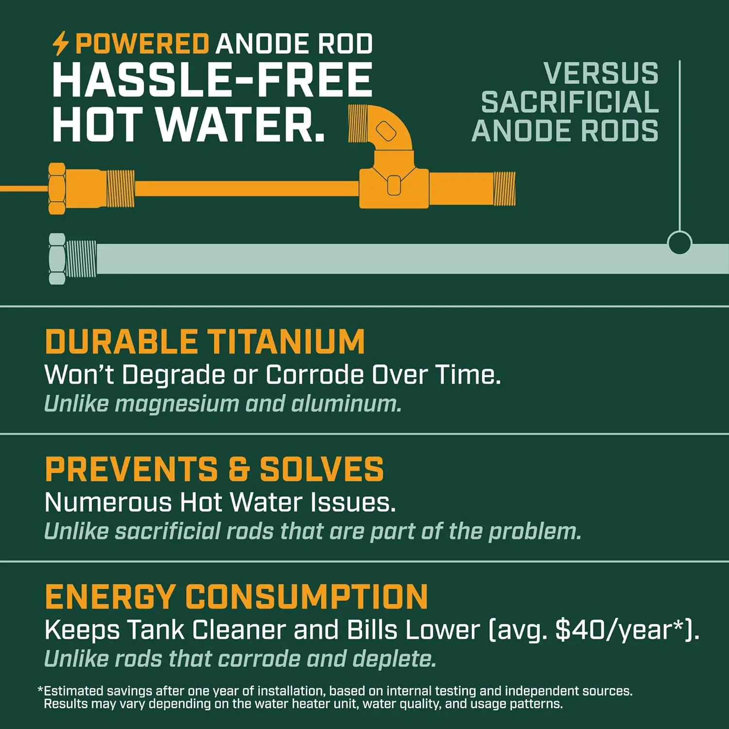 Powered Anode Rod for Bradford White Water Heater and Hot Water Outlet Installation, Eliminates Rotten Egg/Sulfur Smell·Hot Sale