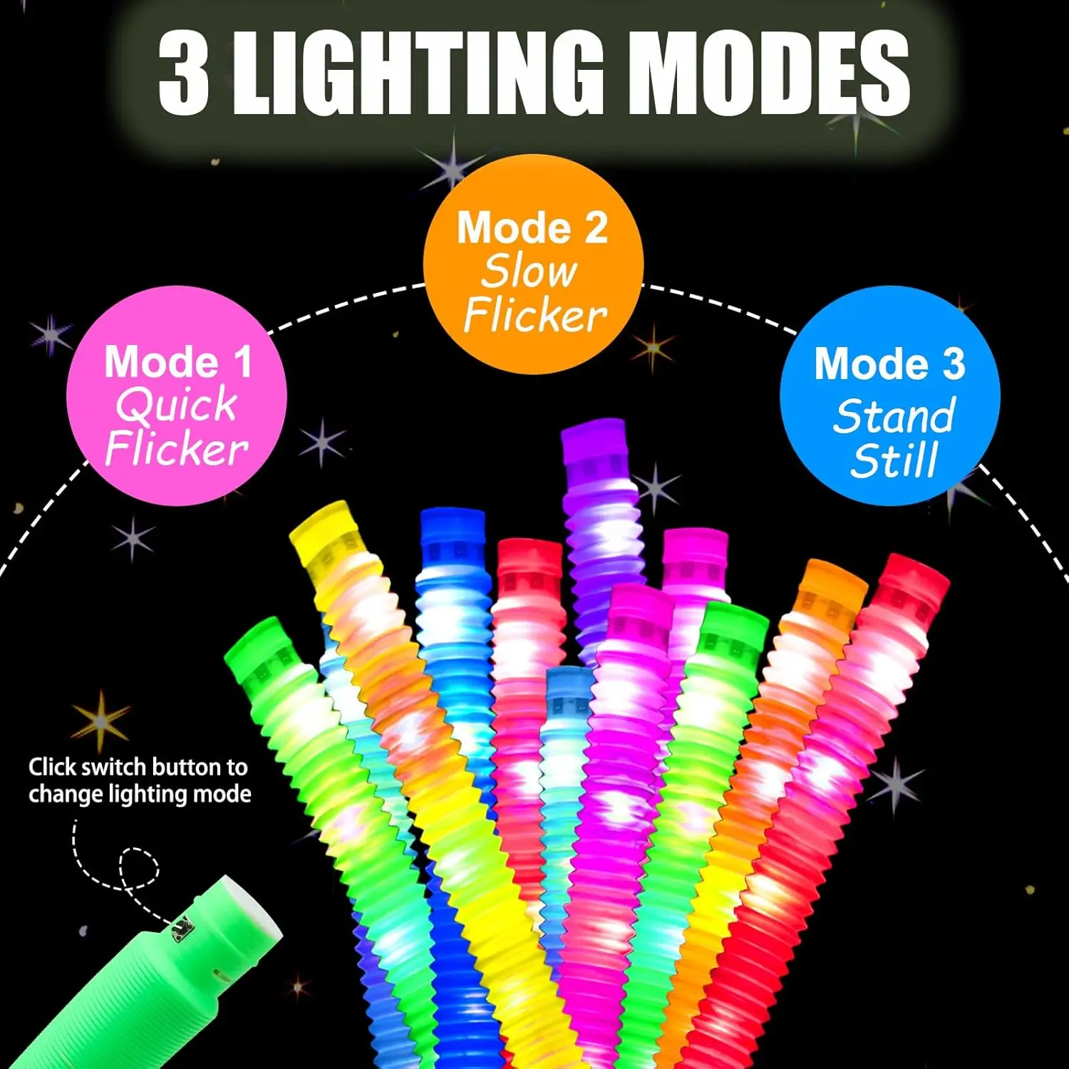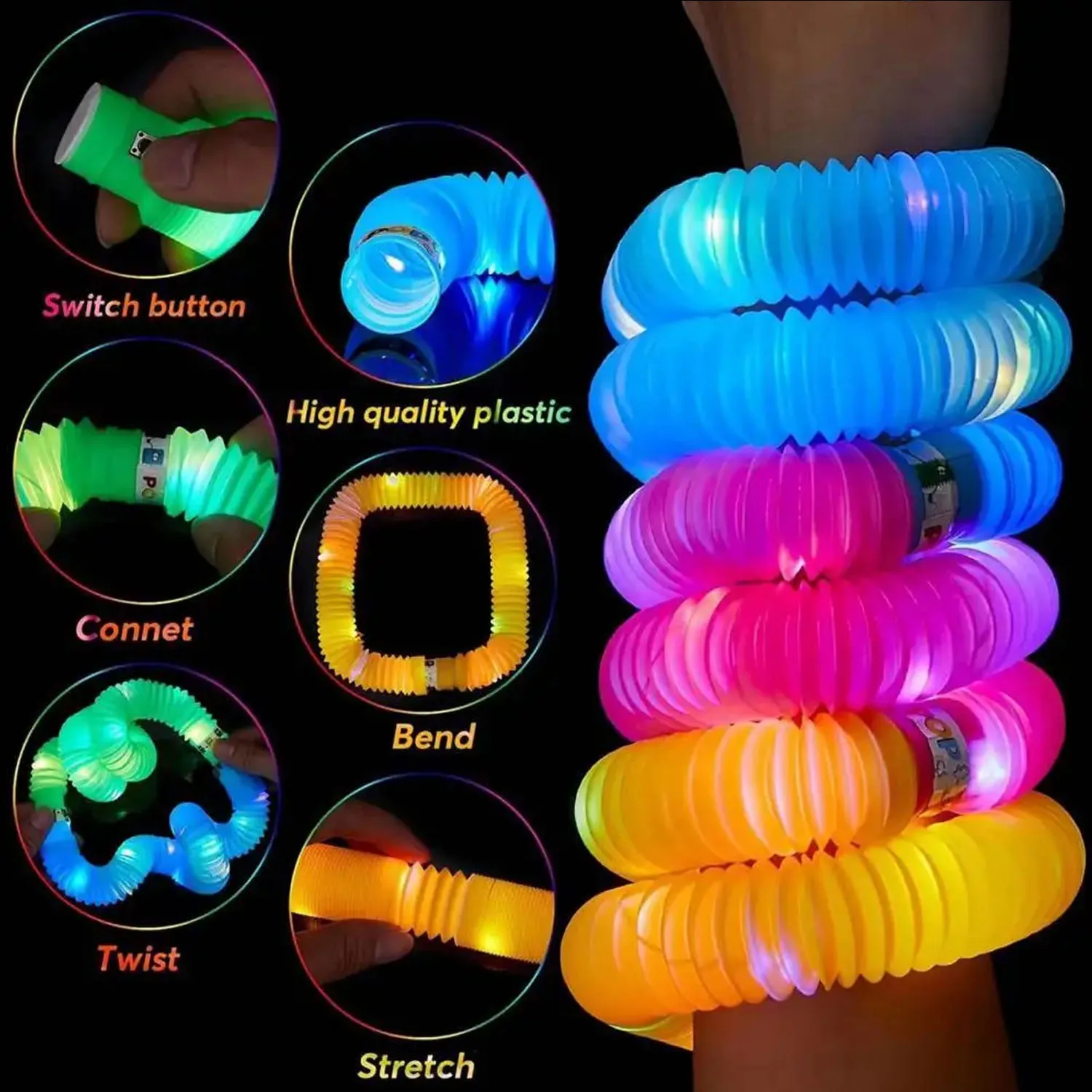 2/6/12 pcs LED Flash Pop Tubes Sensory Toy Stress Relieve Toys Kid Autism Anti Stress Plastic Bellows Children Squeeze Toy