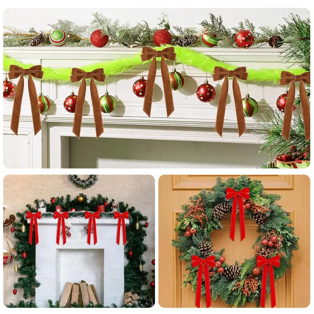 12PCS Velvet Christmas Bows Christmas Tree DIY Hanging Ornaments Ribbon Bow Gift Wrapping Bows Chrismtas Party Gifts
