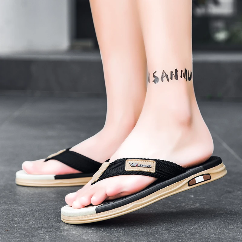 Summer trend contrasting flip flops for men wearing non-slip soft bottom braided beach sandy rubs