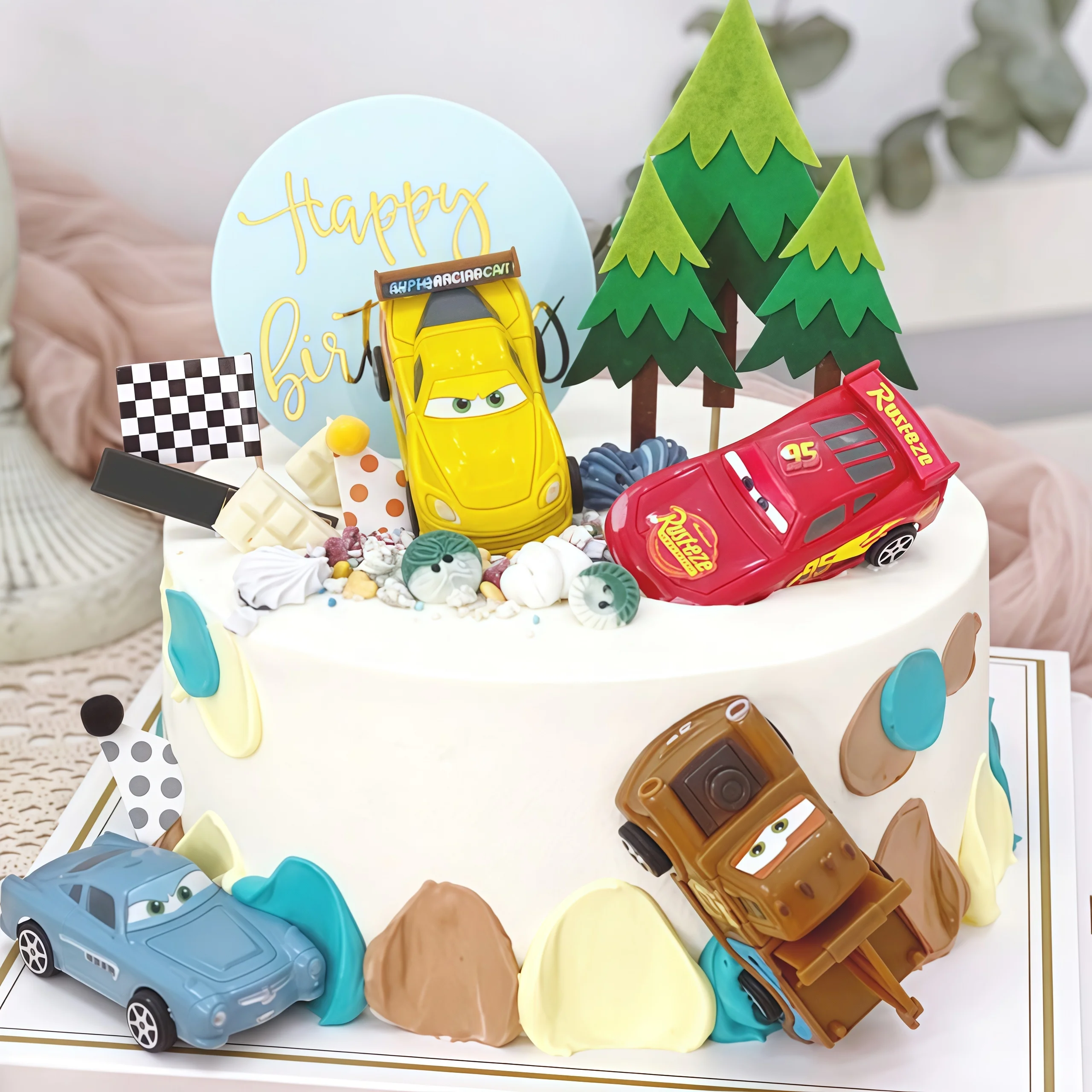 4pcs Lightning Cars Happy Birthday Cake Topper Accessories Kids Baby Shower Birthday Party Decoration Baby Shower Gift Supplies