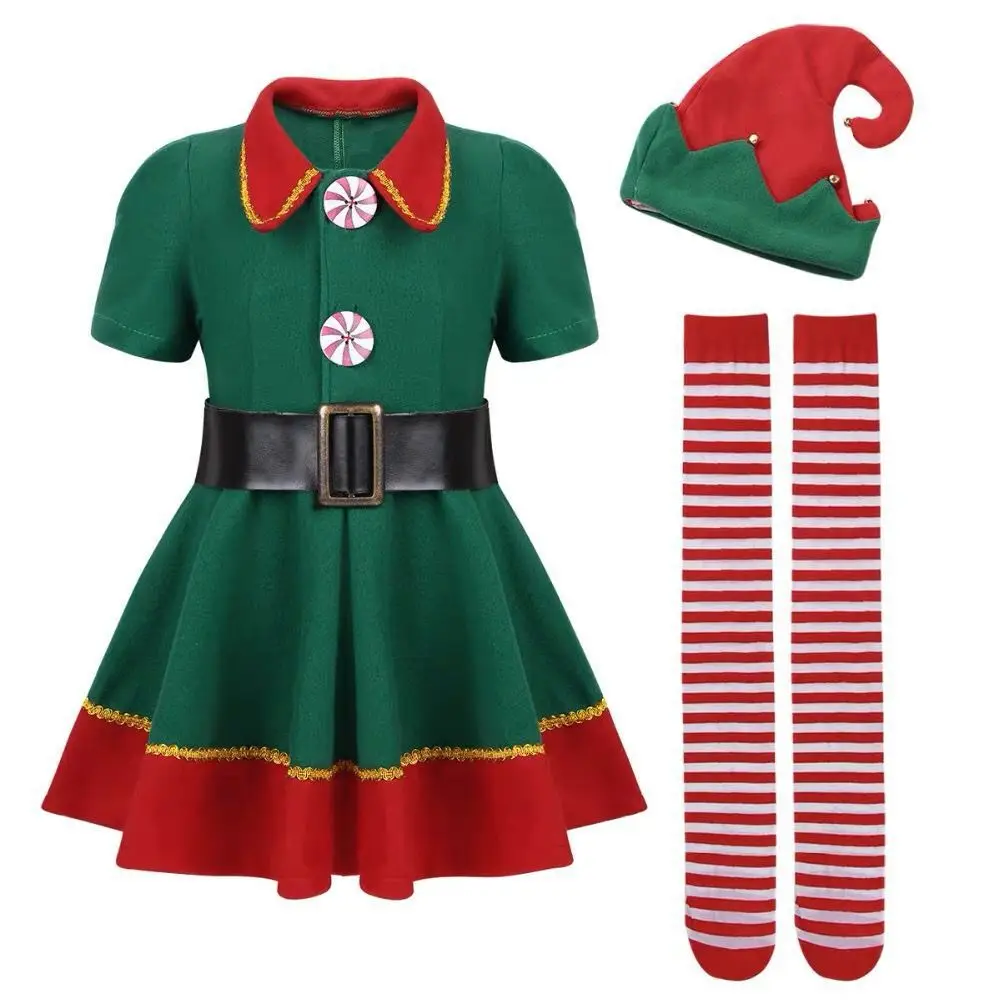 Children and s Christmas elf costumes, Santa Claus costume sets, green elves, Christmas role-playing, 2025, new products.