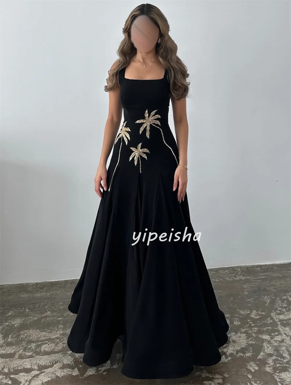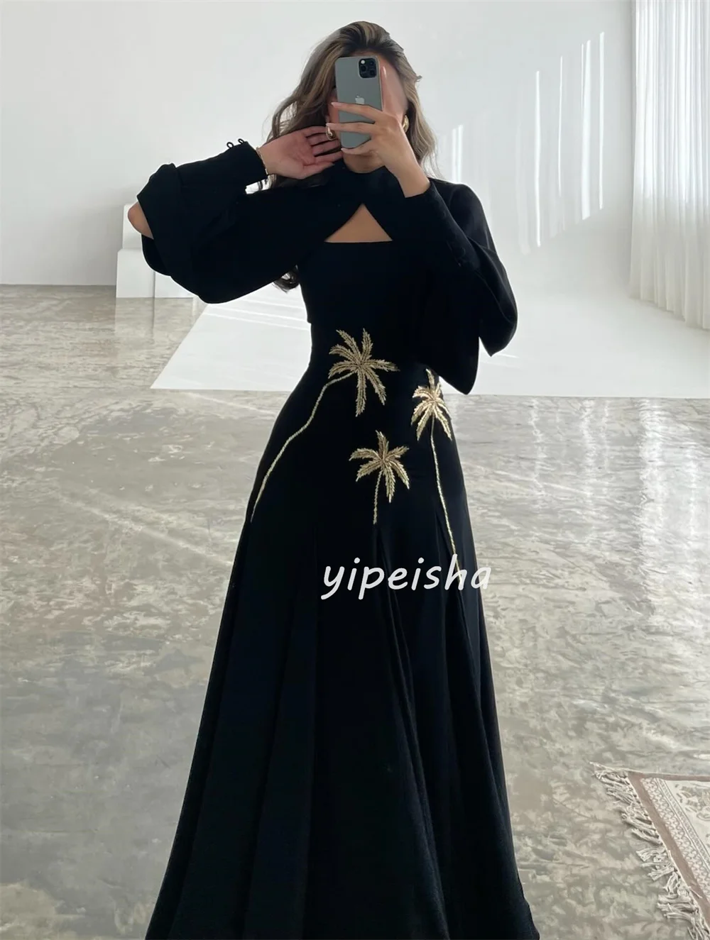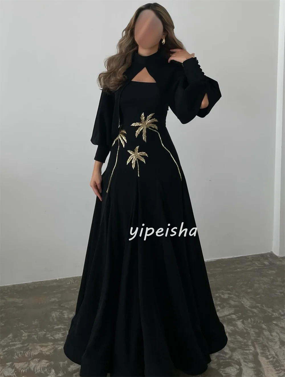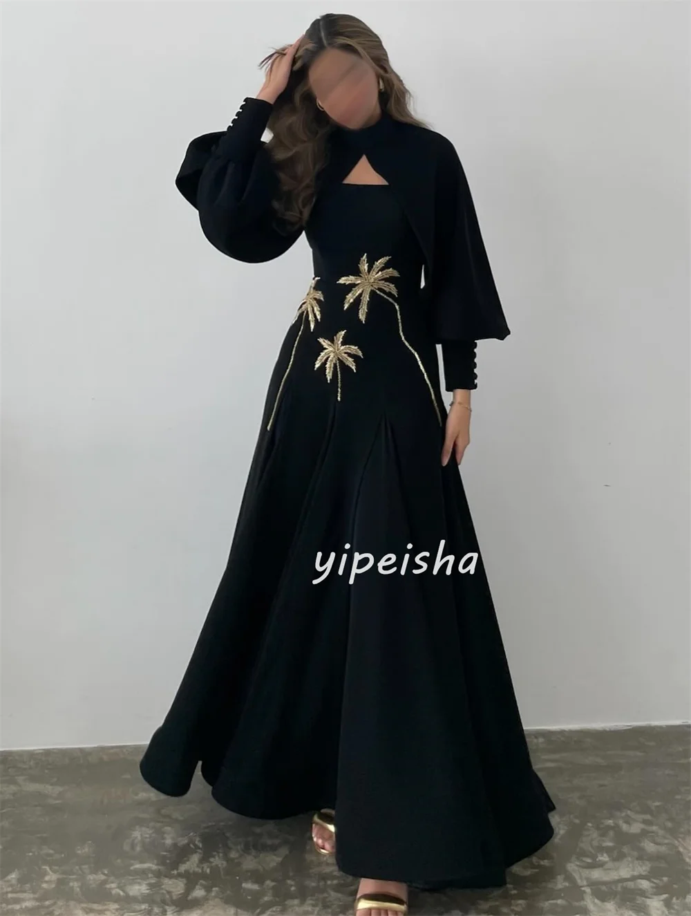 Customized Elegant Classic Jersey Sequined Pleat A-line High Collar Long Dresses Bespoke Occasion Dresses Sizes Available Formal