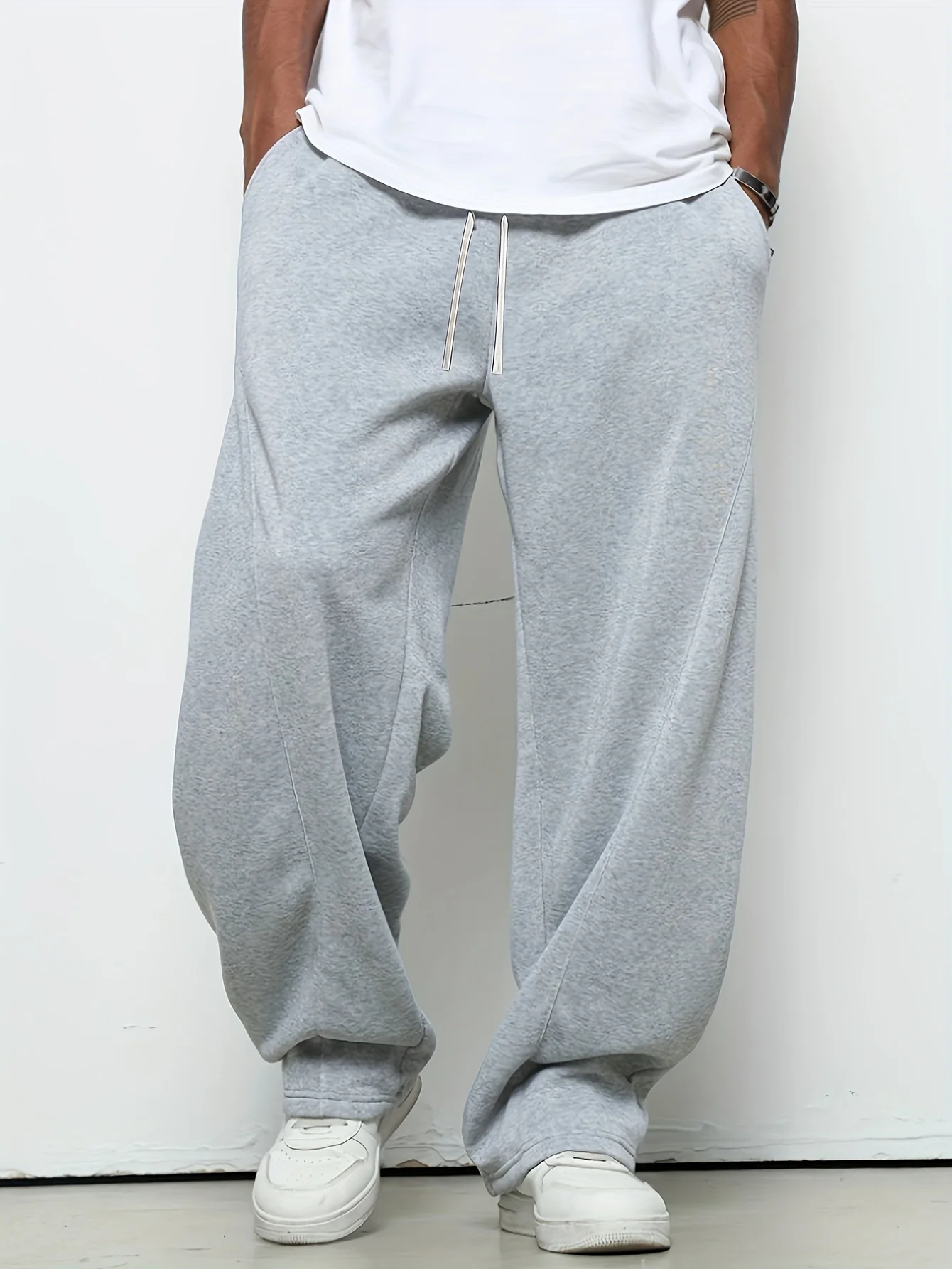 Men's heavy breathable sports jogging pants elastic drawstring waist loose straight casual trousers thick men's sweater pants
