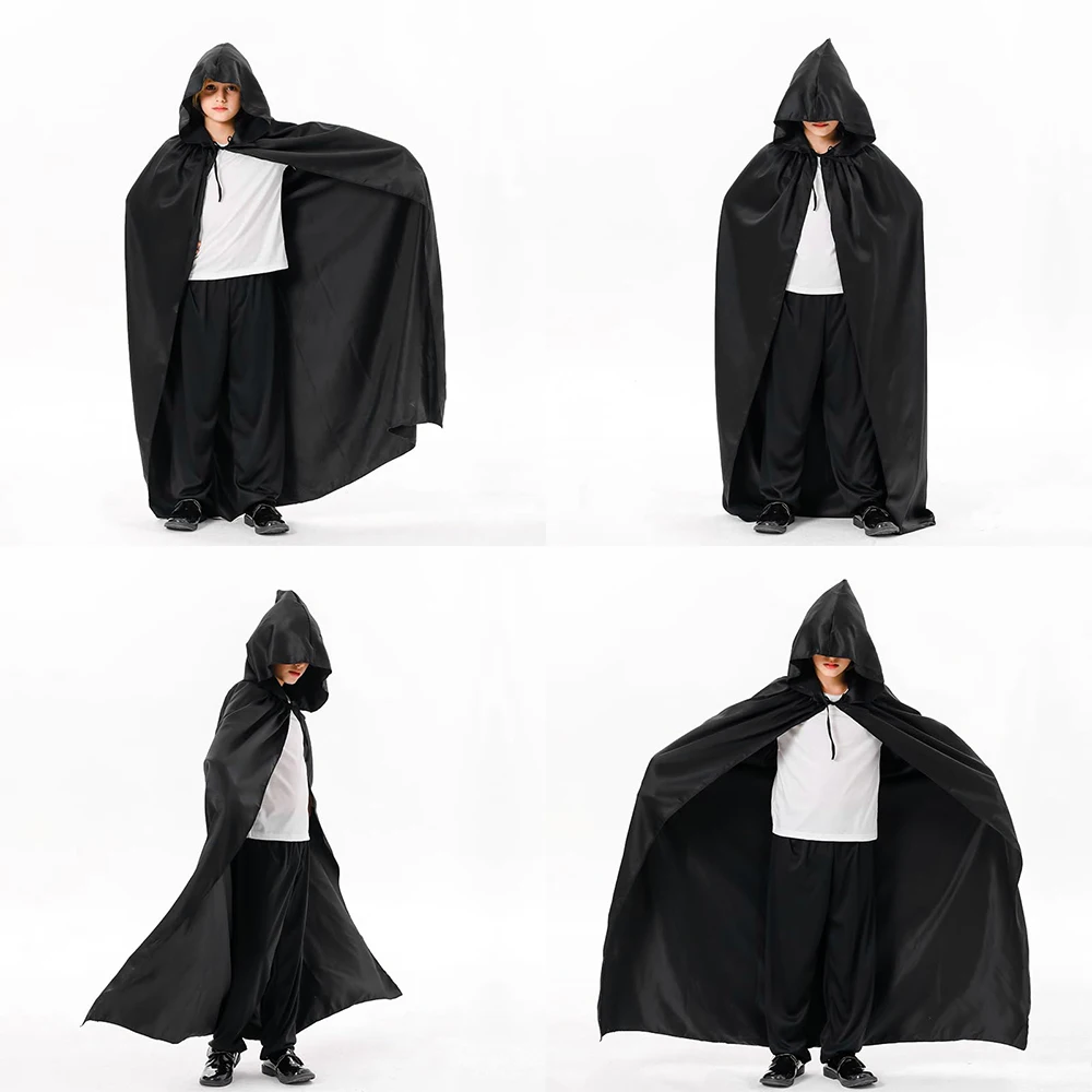 Halloween Cloak Soft Uni Hooded Black Robe Witch Long Cape Cosplay Costume Prop Party Performance Supplies Holiday Decoration