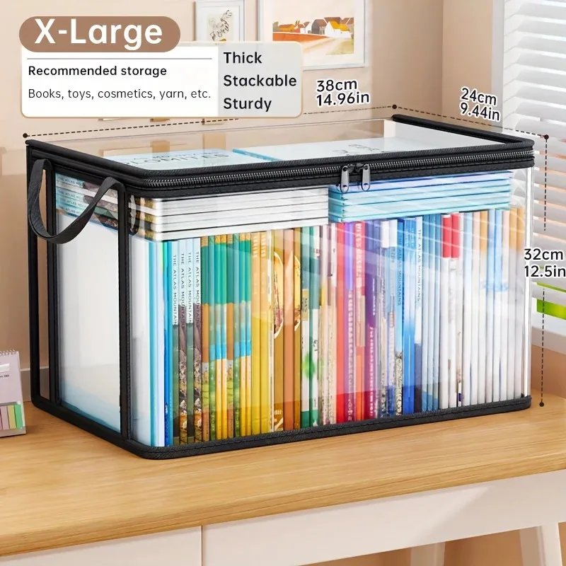 PVC Storage Bag with Flip Lid & Viewing Window - Durable Rectangular Organizer for Toys, Crafts, Books, School Supplies, Snacks