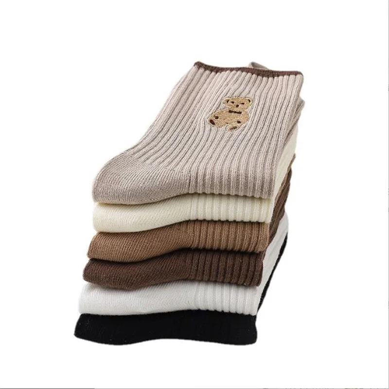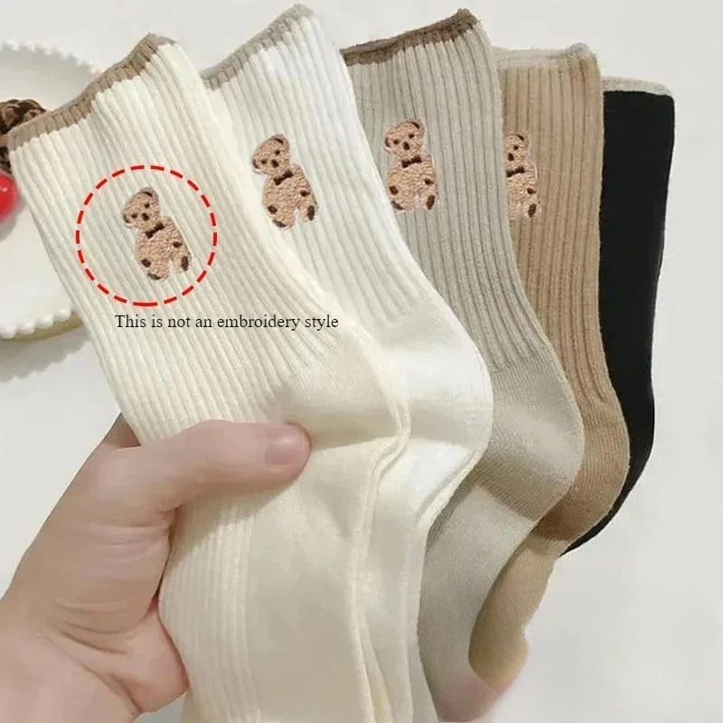 5pairs Cartoon Bear Socks Soft Cotton Socks Autumn Coffee Stockings Kawaii Women Socks Korean Casual Stockings lady Hosiery