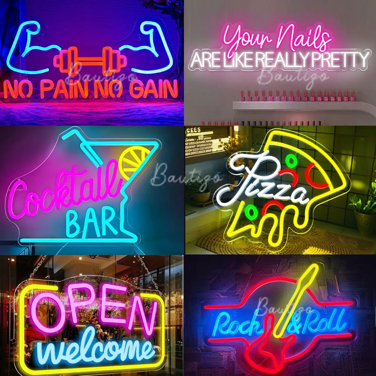Room Decor & Business Logo Custom Signs: 3D Acrylic Neon/LED Lights for Barber Bars, Cafés, Beauty Salons, Parties & Birthdays