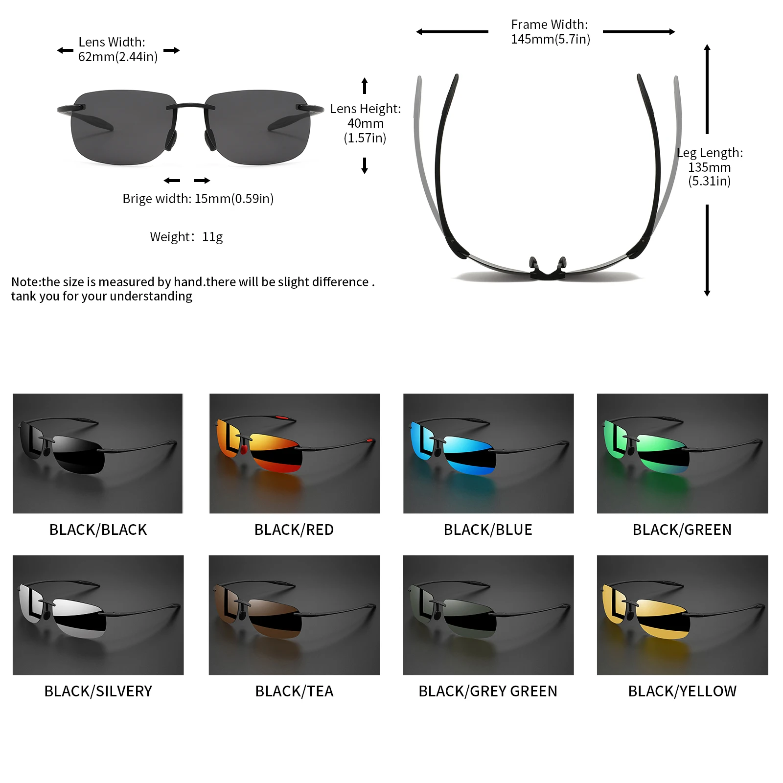 Ultra Light 11g TR90 Frameless Polarized Sunglasses - Flexible & Comfort Fit, Square Shape for Driving, Fishing, Outdoor