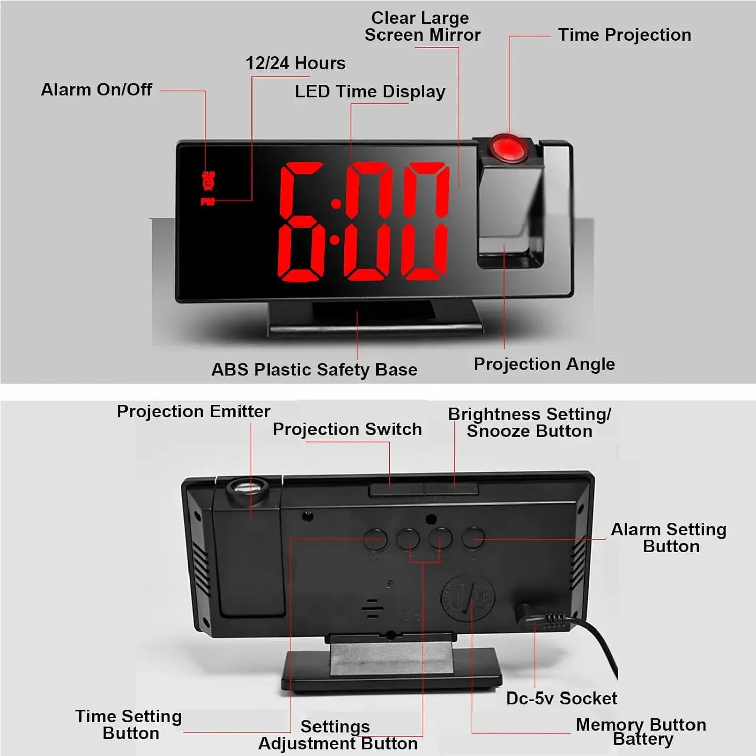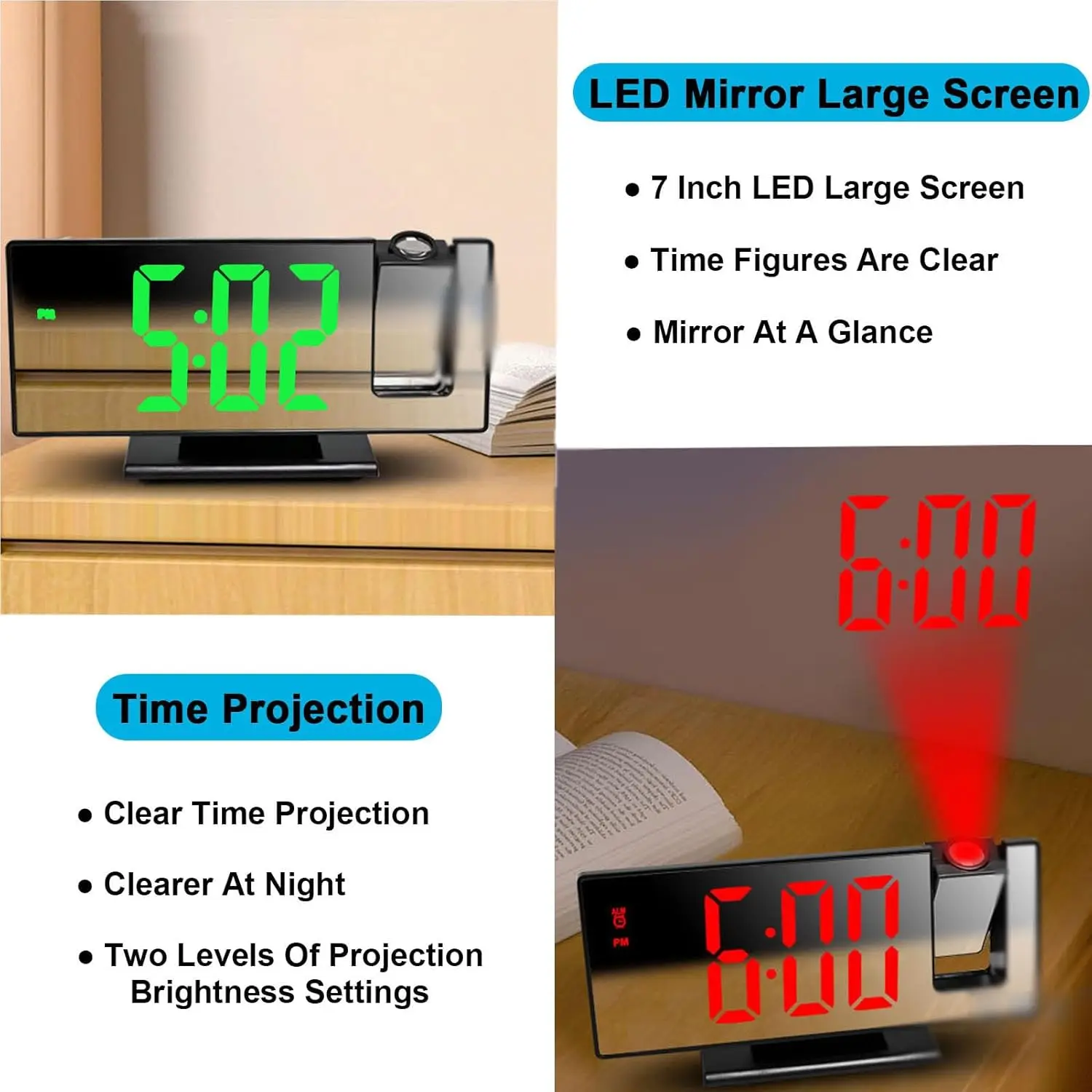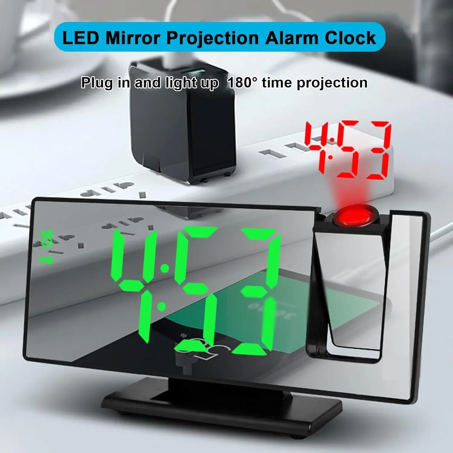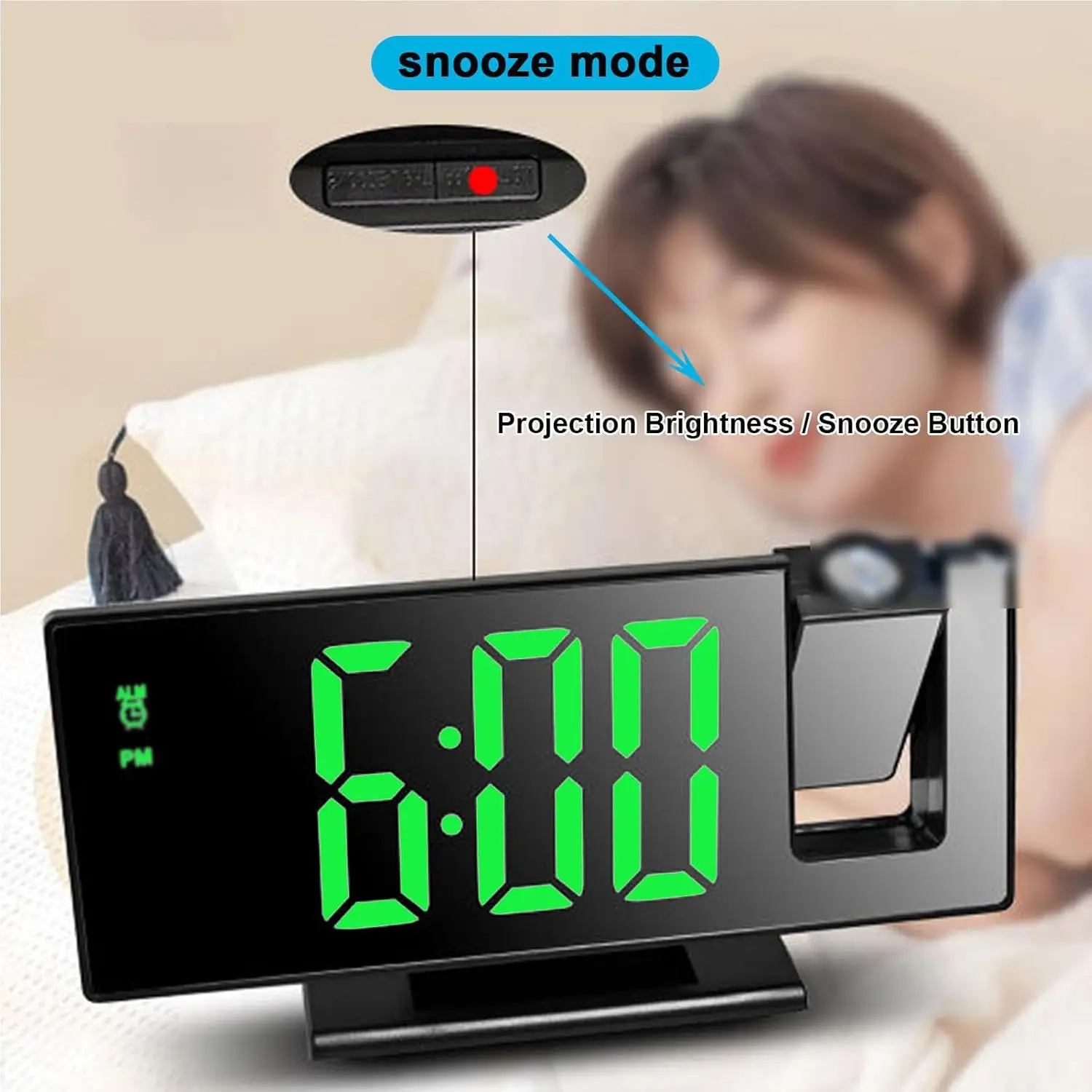 Radio LED Digital Smart Alarm Clock Watch Table Electronic Desktop Clocks USB Wake Up Clock with 180° Time Projector Snooze