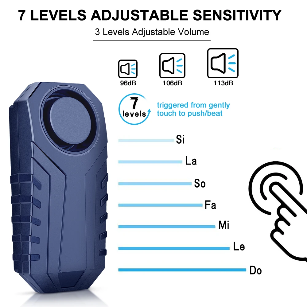 113dB Bike Anti-Theft Alarm with Remote Wireless Anti-Theft Motorcycle Alarm Triggered Vibration Sensor for Electric Scooter