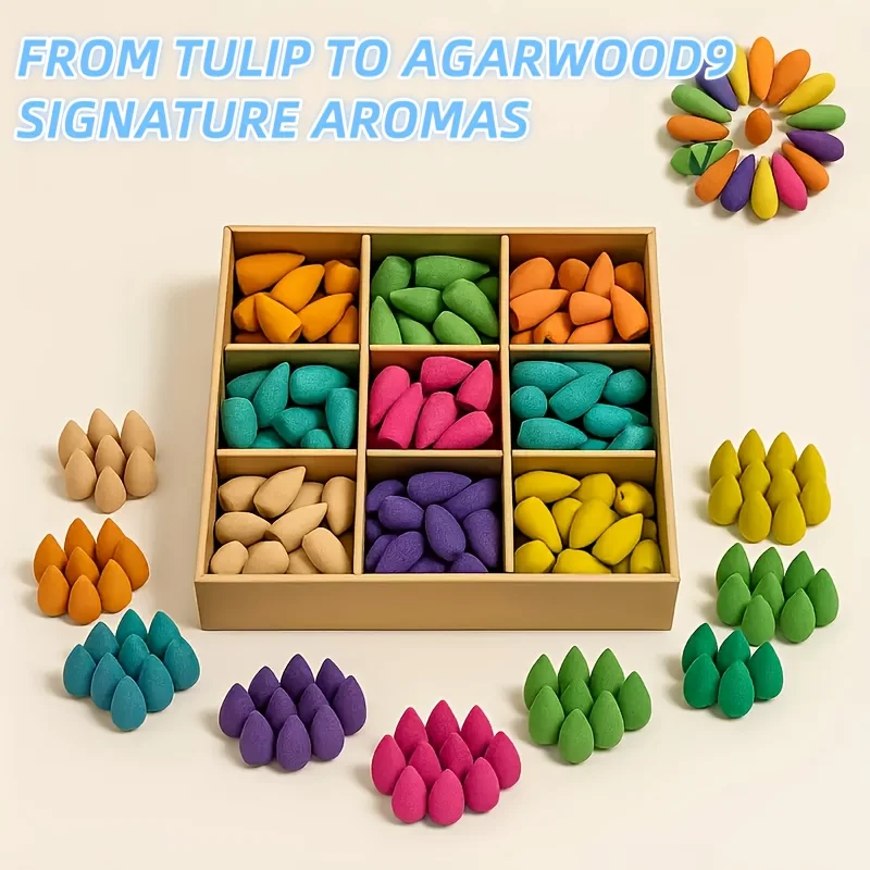 9Pack Colorful Aromatherapy Incense Sticks for Home Indoor Long Lasting Fragrance Smoke Falls for Viewing Relaxation
