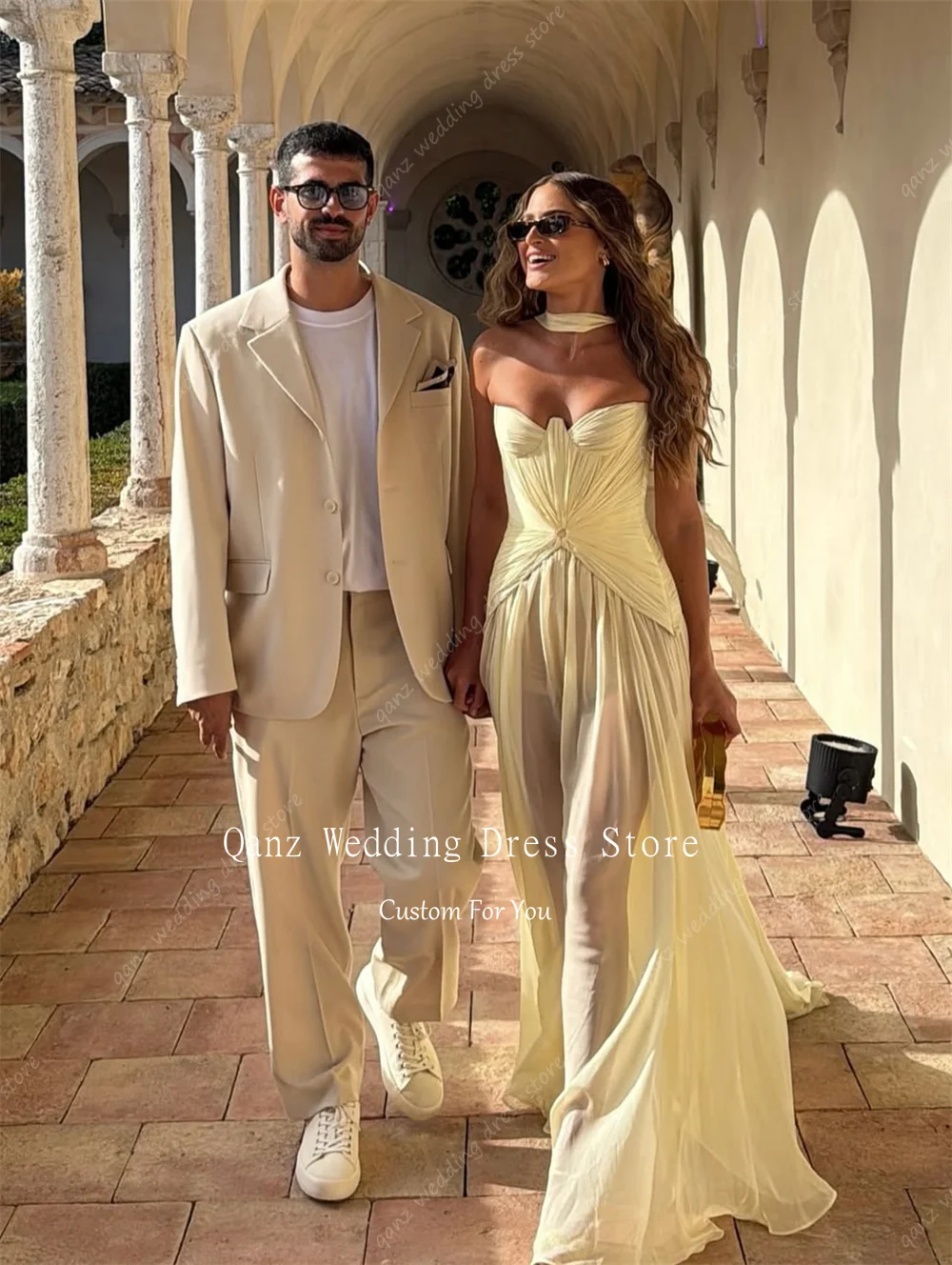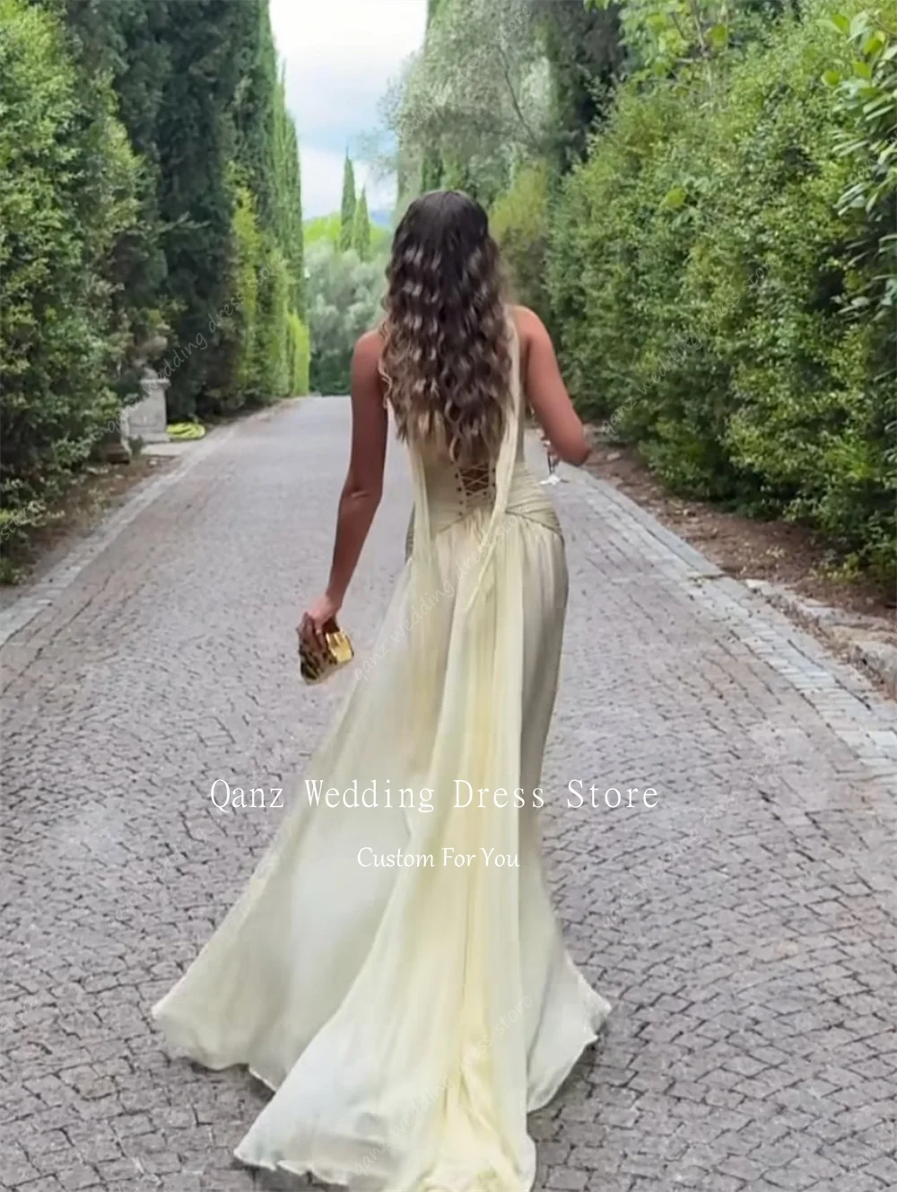 Qanz Light Yellow Evening Dresses Sweetheart Chiffon A Line Vestidos Para Mujer elegant Dresses For Special Event Customized