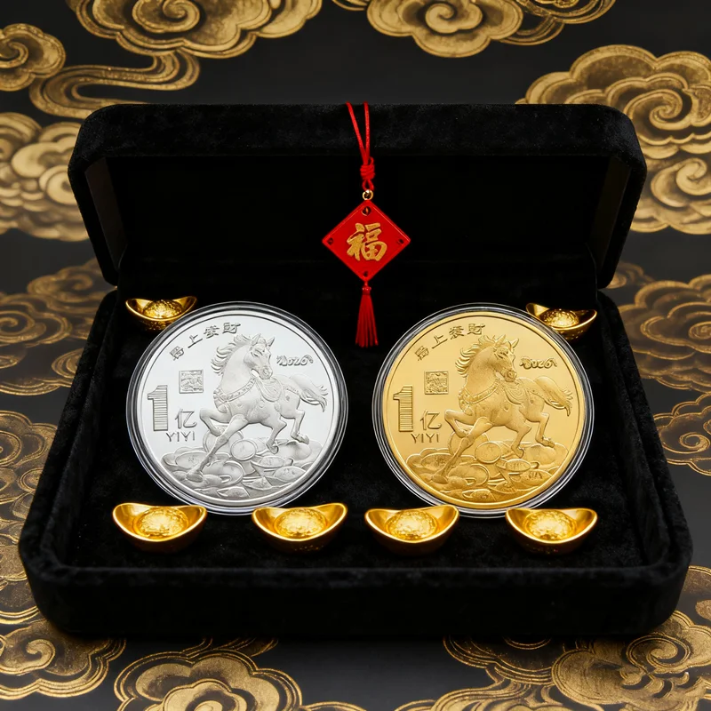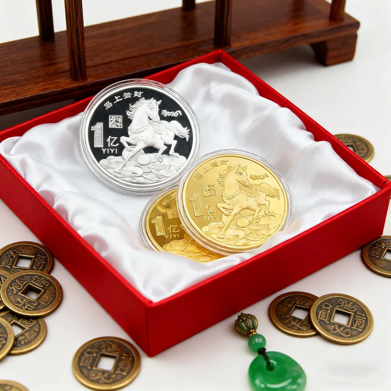 40mm 1Pc Metal Collection 2026 Chinese New Year Gold Souvenir Coins Lucky Animal Horse Collectible Coins Silver Challenge Coin