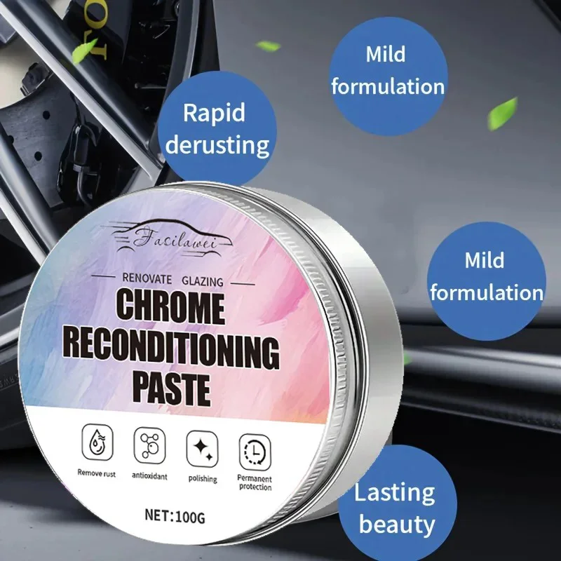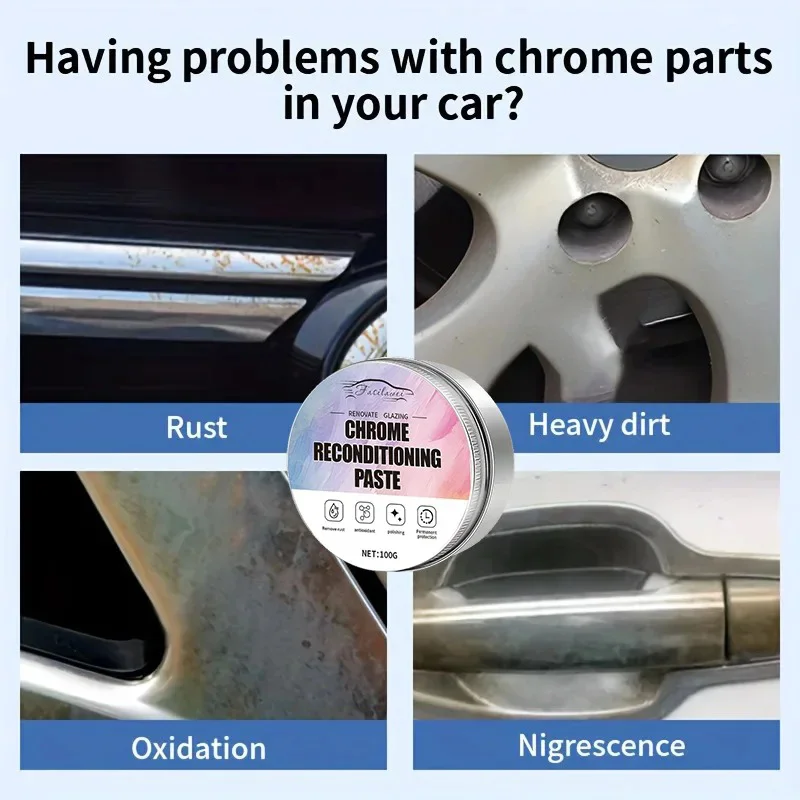 NEW A Restoration Paste for Chrome Parts of Vehicles, Designed for Renewing Oxidized Chrome Trim And Emblems, Comes with a Spong